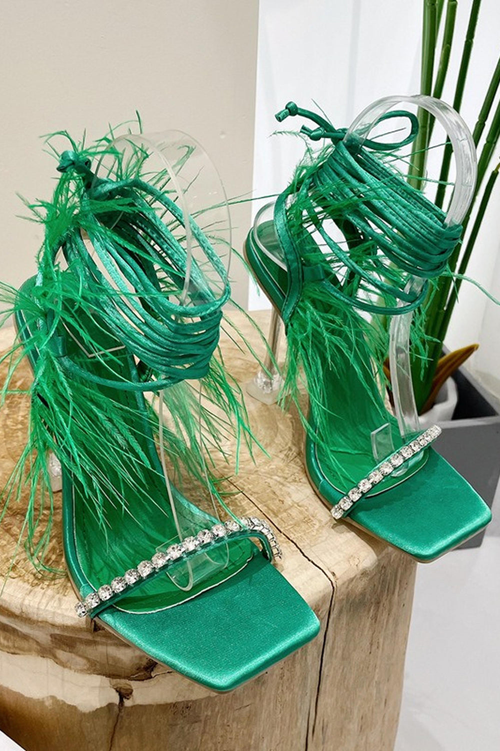 Sparkly Fuchsia Strappy Stiletto Heel Sandals with Feather