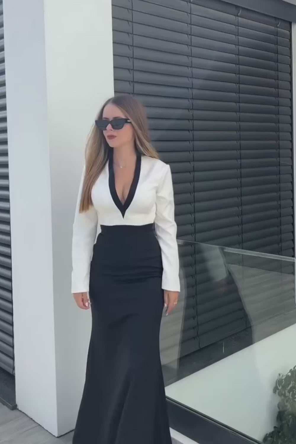 Long Sleeve Black Mermaid V Neck Formal Dress