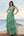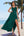 Green A-Line V Neck Ruched Tiered Long Bridesmaid Dress with Slit