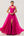 Fuchsia A-Line Strapless Corset Pockets Floral Maxi Dress with Slit