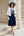 Navy White Sheath Round Neck Midi Mother of the Bride Dress with Cape