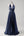 Navy Mermaid V-Neck Watteau Train Corset Beaded Prom Dress with Slit