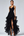Ruffled Organza High-Low Black Evening Dress with Slit
