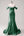 Green Mermaid Satin Ruched Sequins Long Prom Dress with Slit