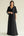 Black Chiffon Half Sleeves Round Neck Appliques A Line Mother of the Bride Dress