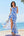 Blue Printed Tiered A Line Princess Prom Dress with Slit
