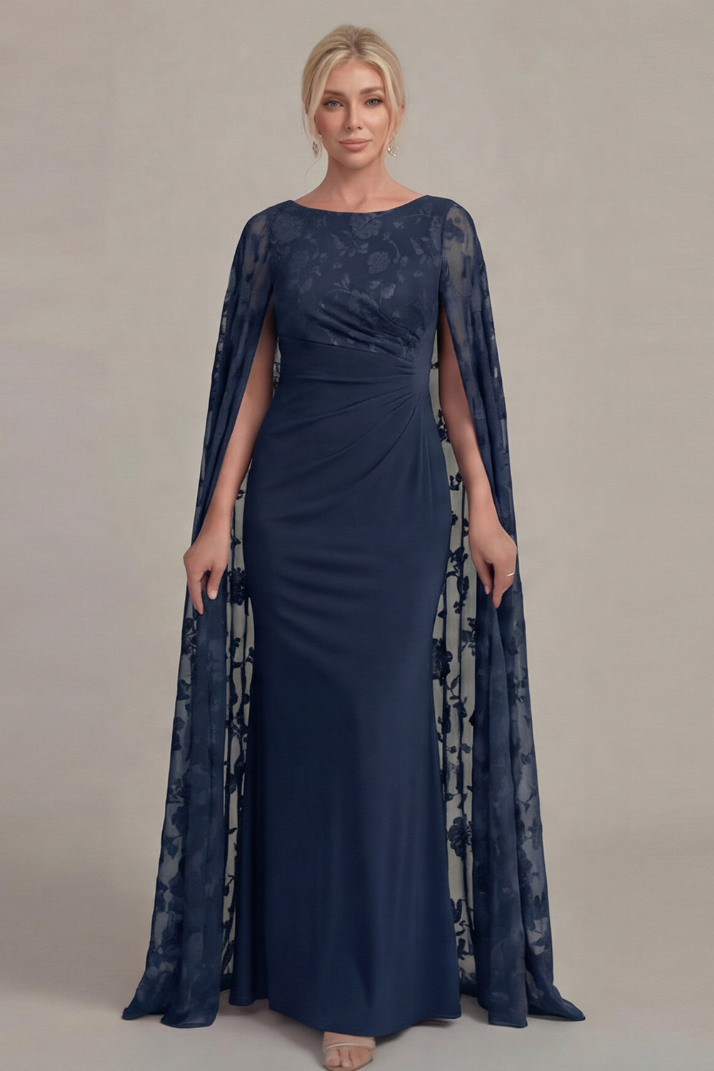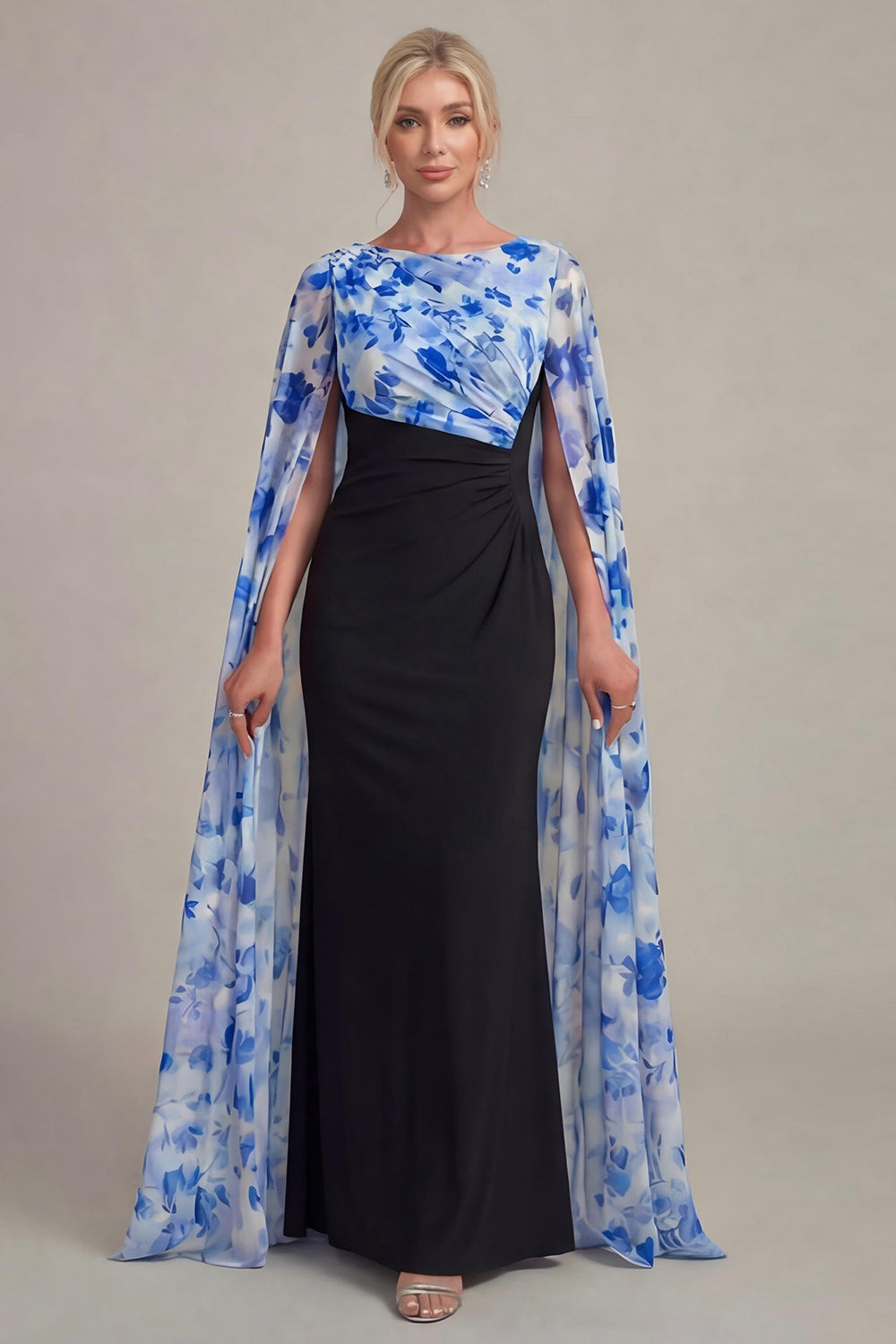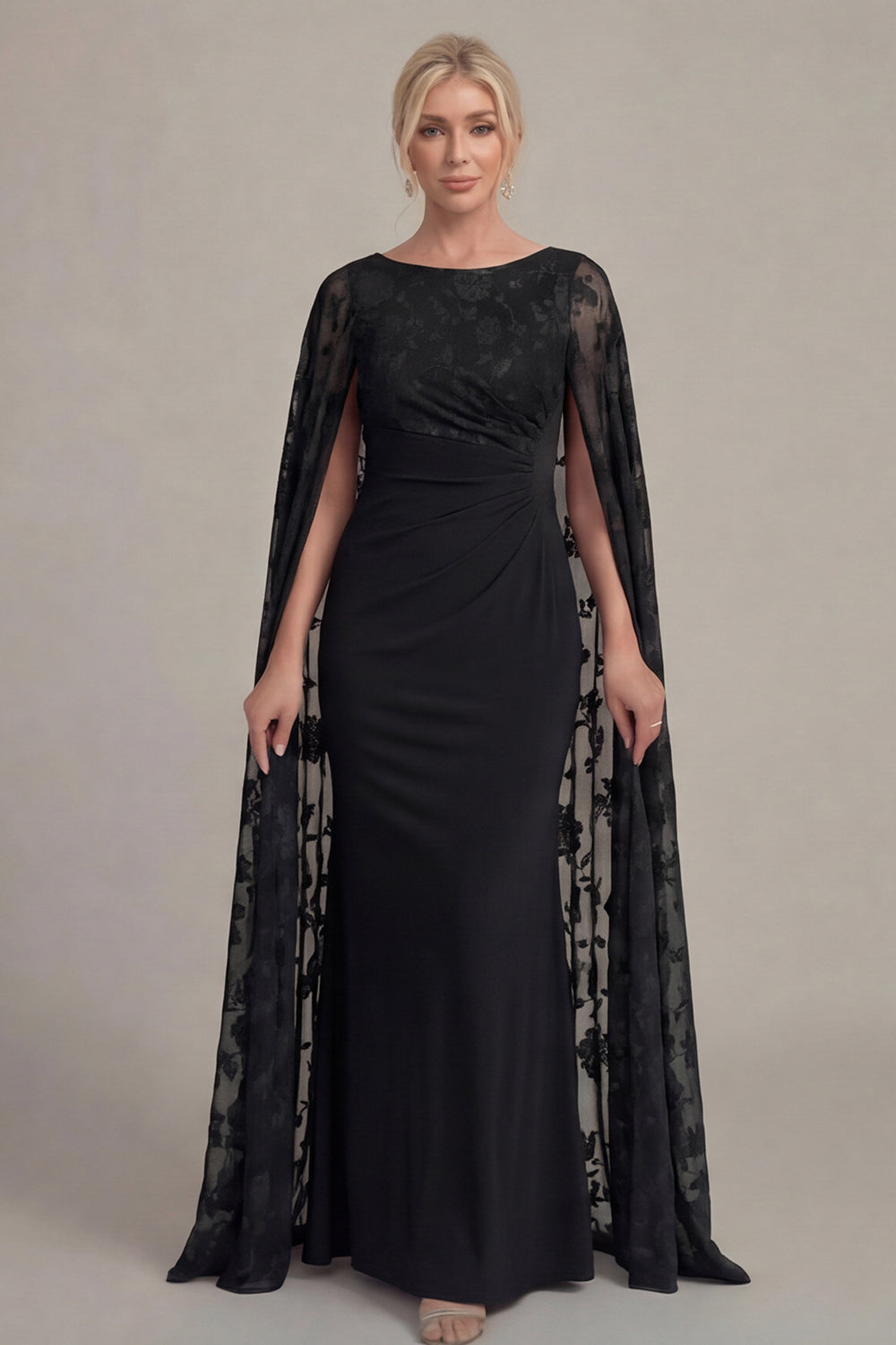 Black Sheath Long Mother of the Bride Dress with Cape