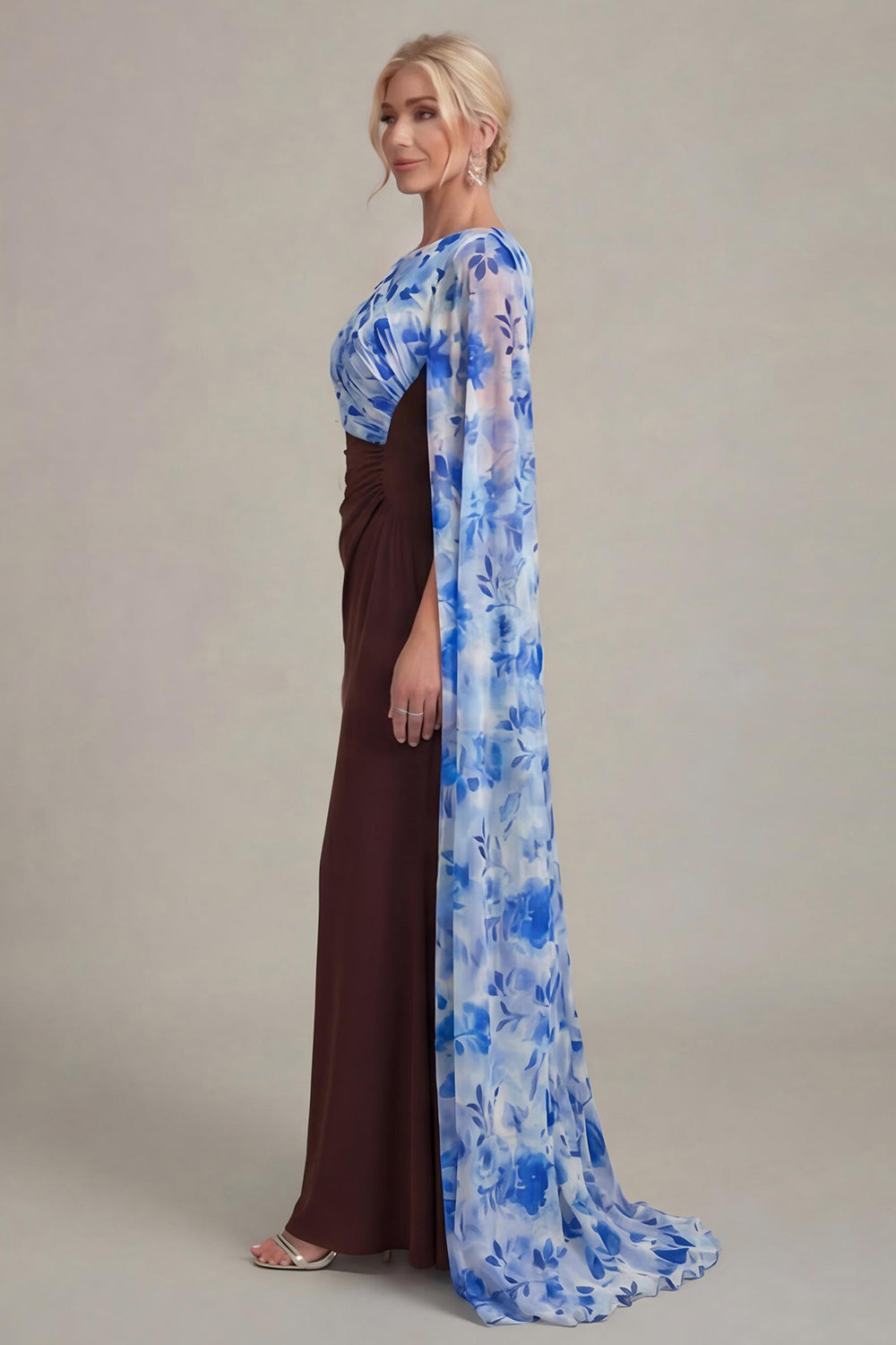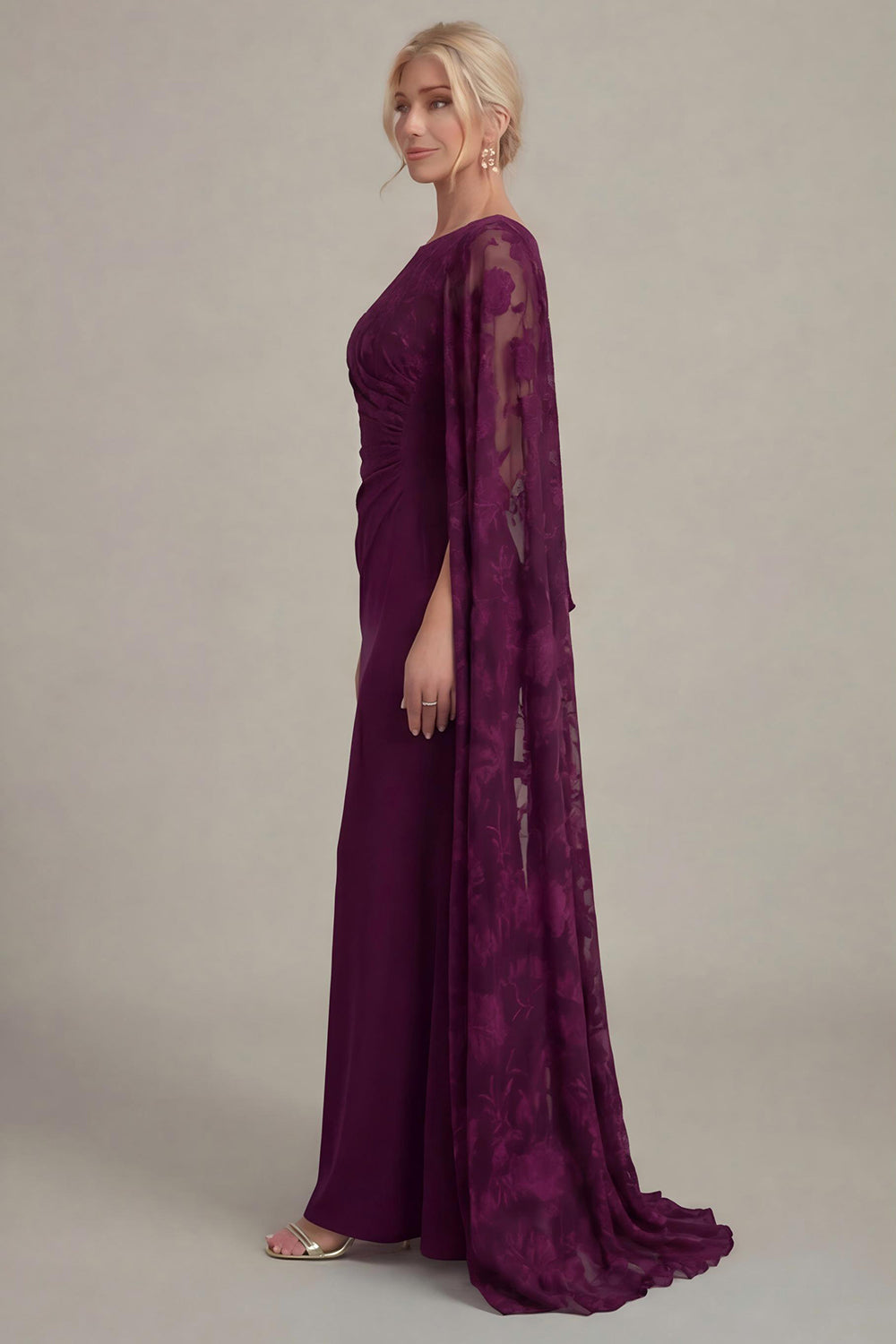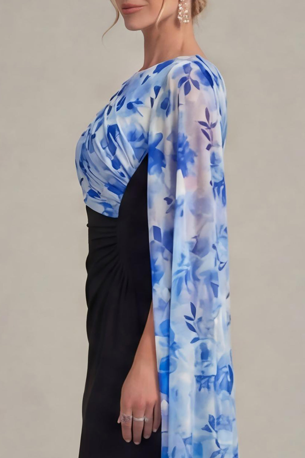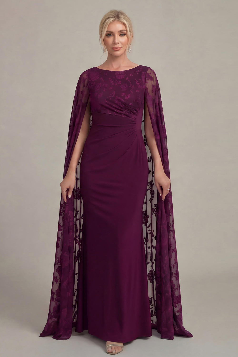 Black Sheath Long Mother of the Bride Dress with Cape