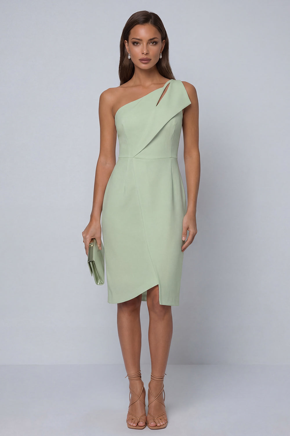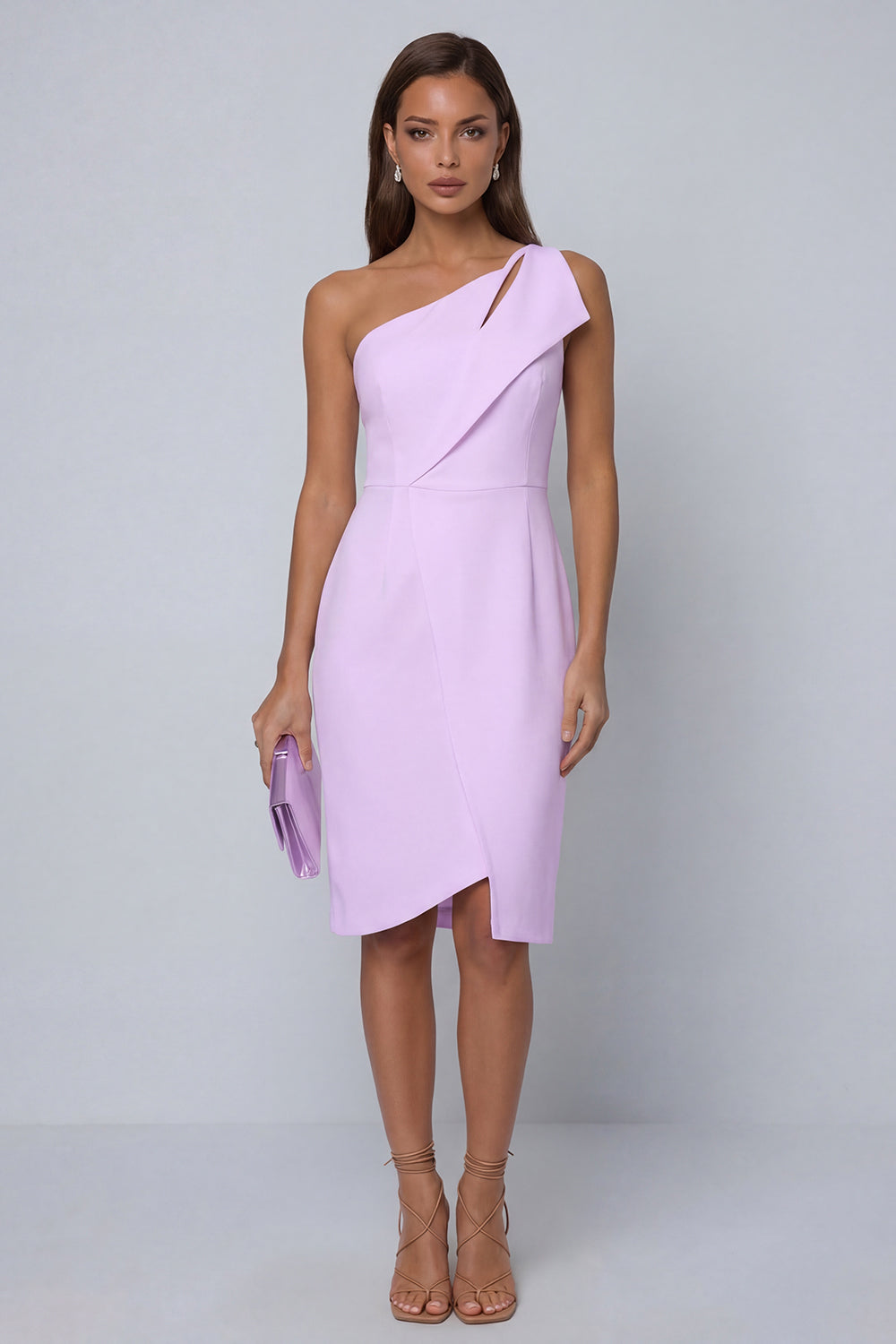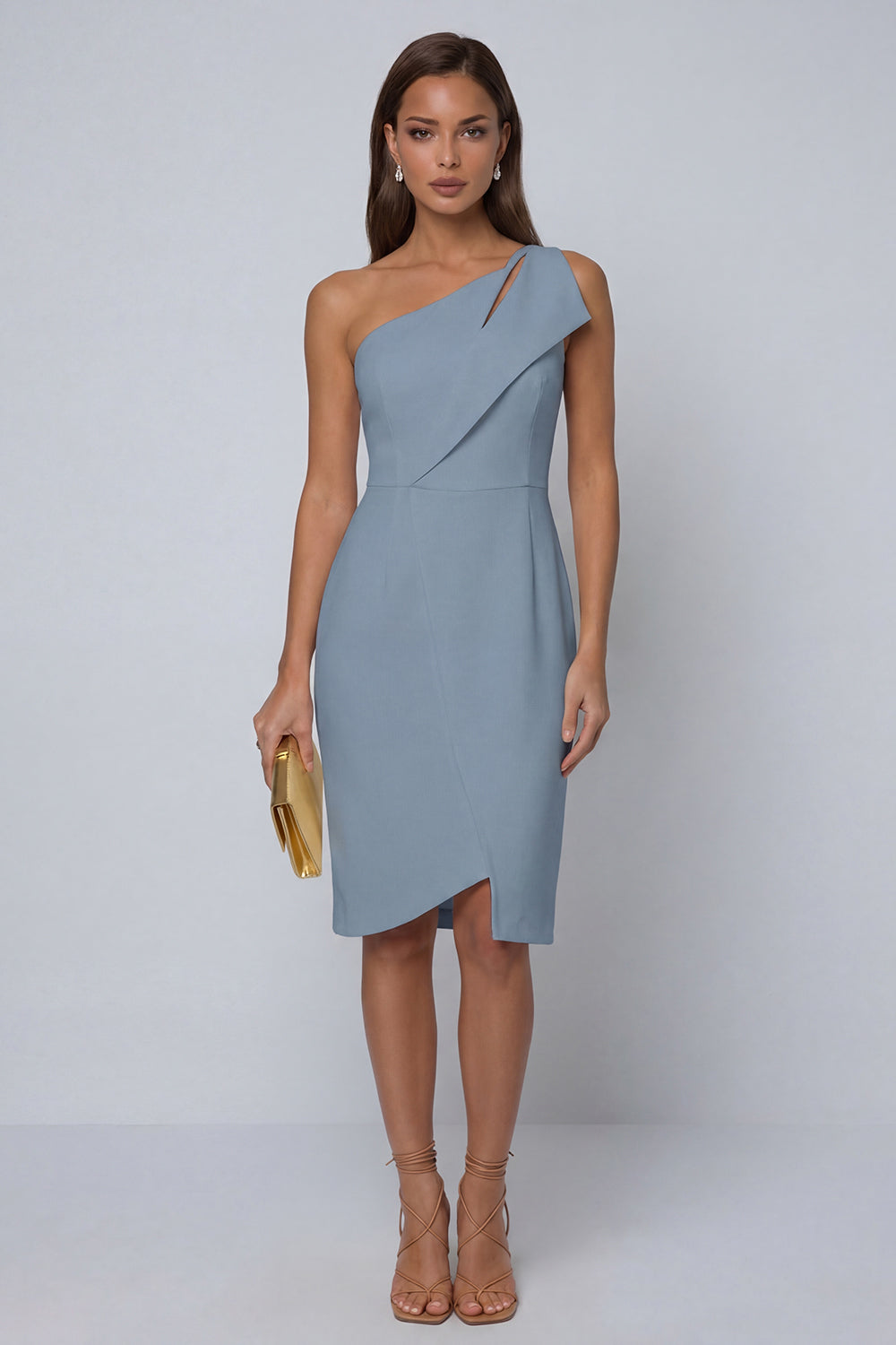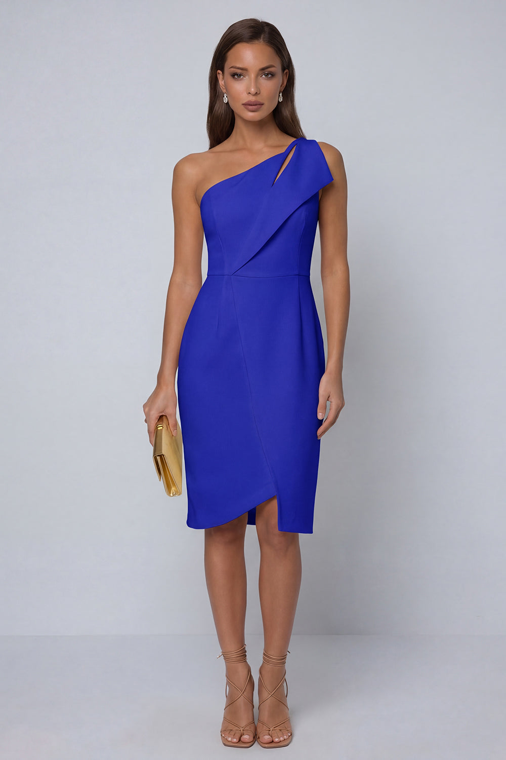 One Shoulder Black Sheath Knee-Length Work Dress