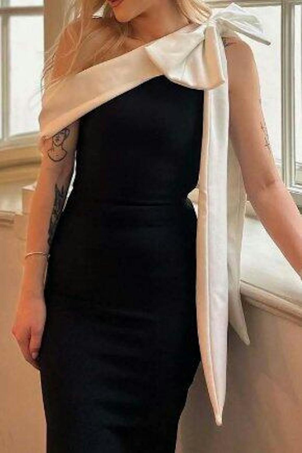 One Shoulder Bodycon Little Black Dress with Bowknot