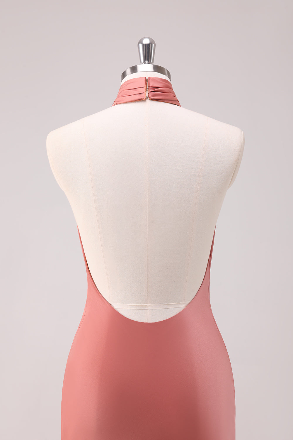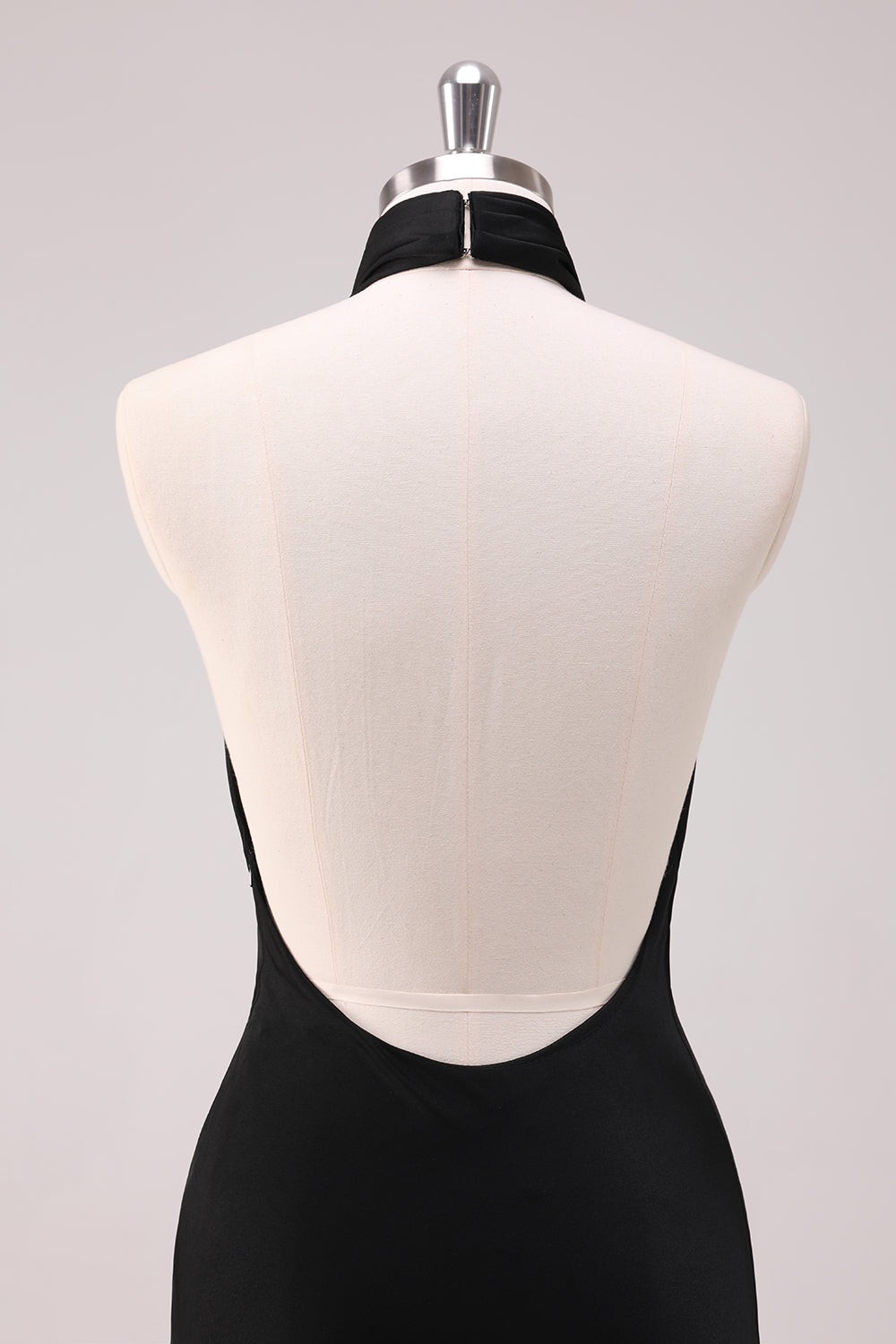 Black Mermaid Halter Open Back Floor Length Satin Bridesmaid Dress