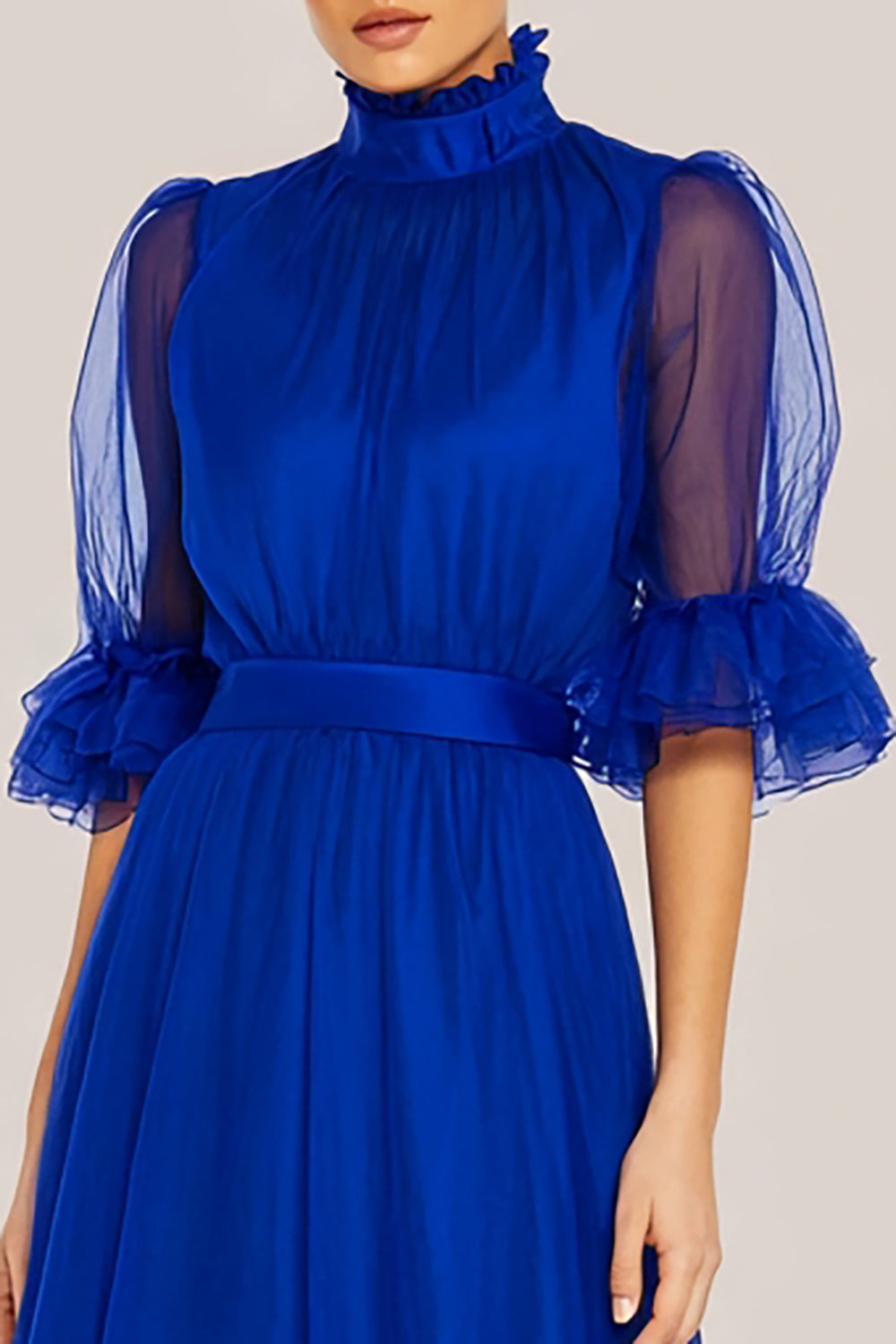 Royal Blue High Neck High Low Ruffled Formal Dress