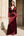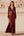 Burgundy Long Sleeve V Neck Satin Formal Dress