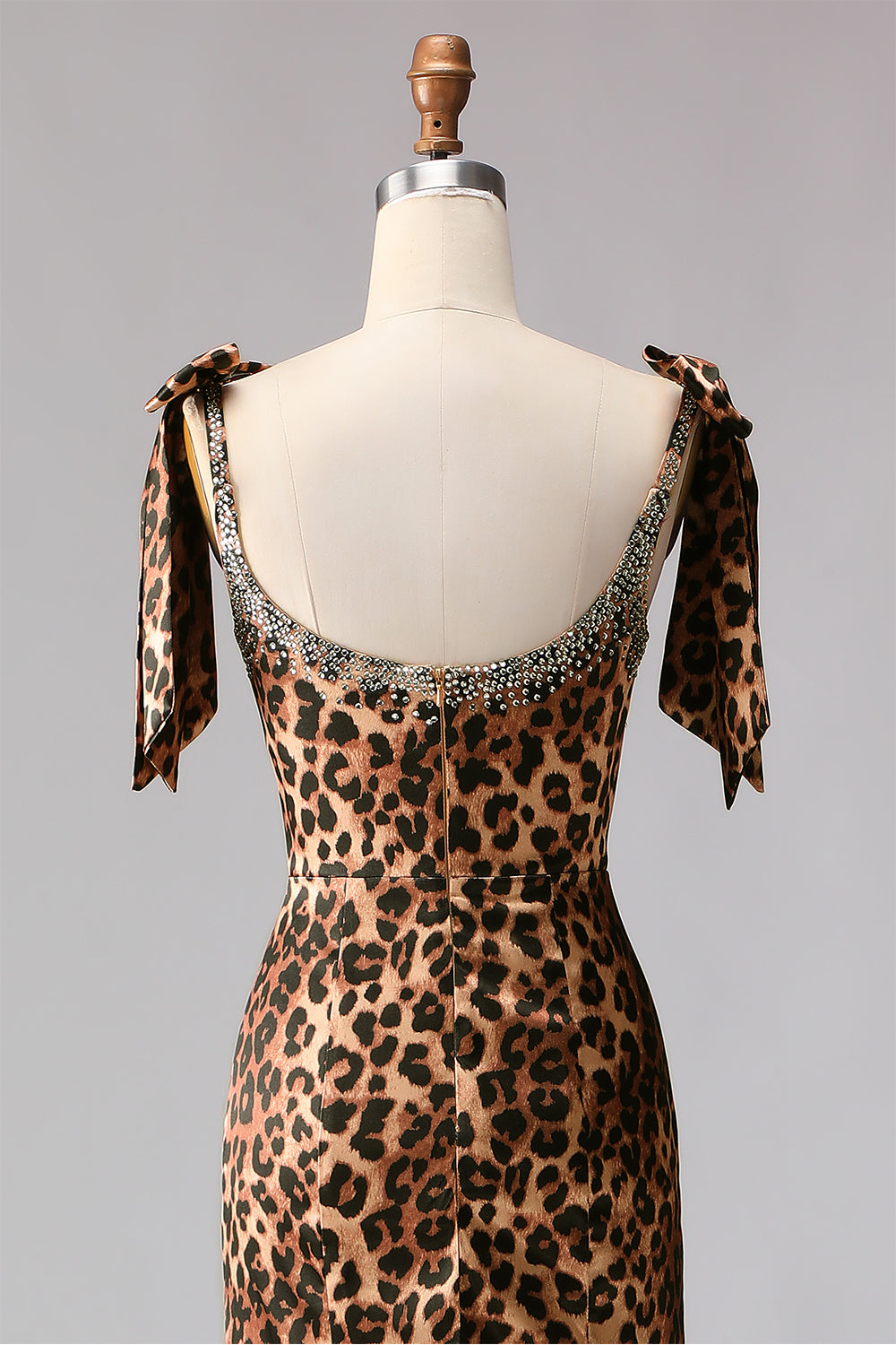 Mermaid Beaded Bowed Brown Leopard Prom Dress