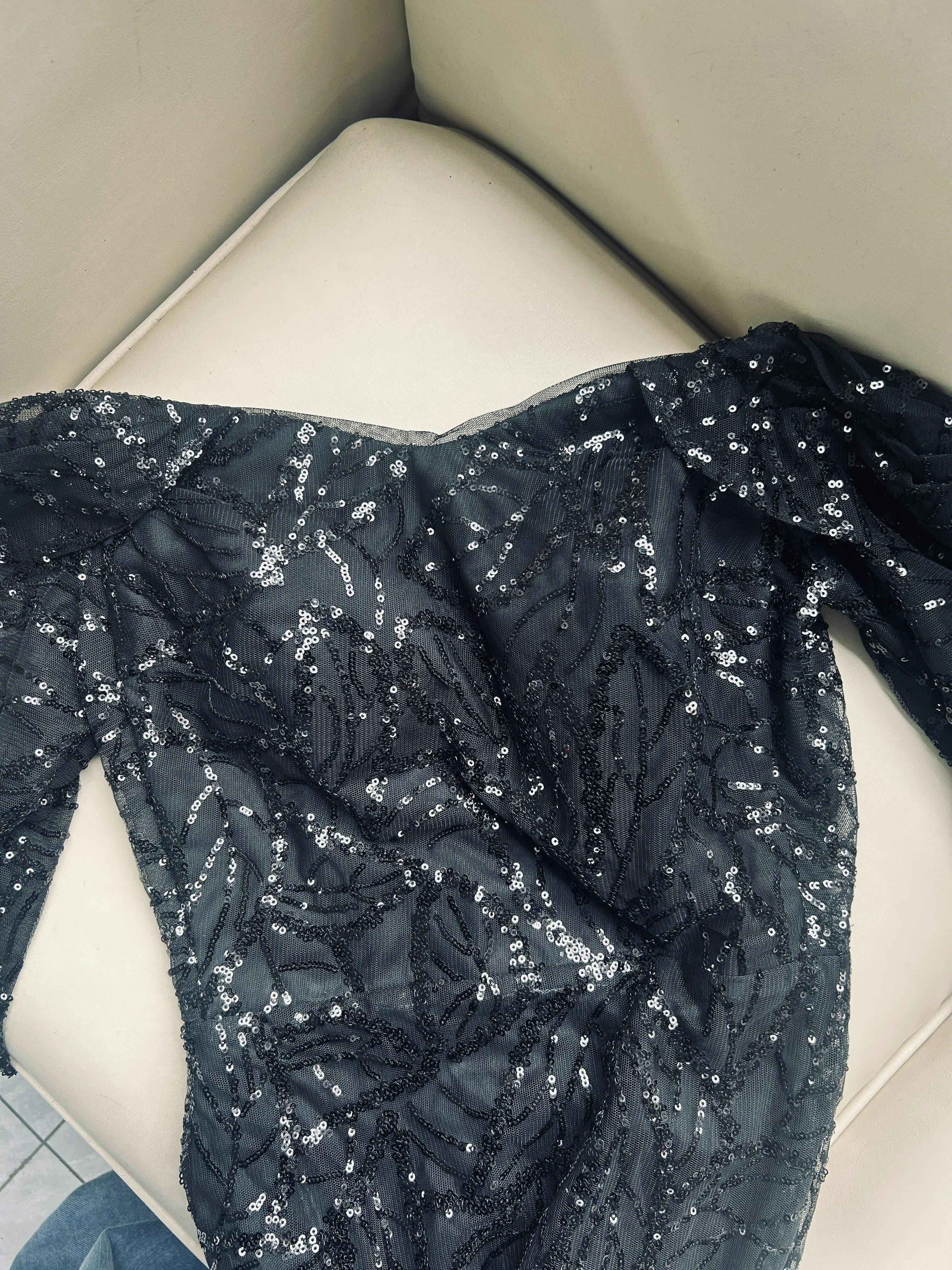 Black Sheath Off The Shoulder Sequin Formal Dress