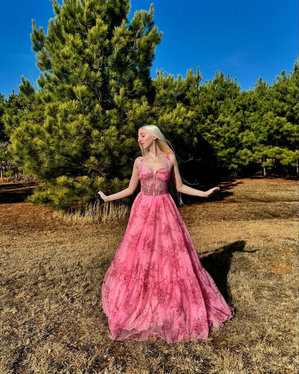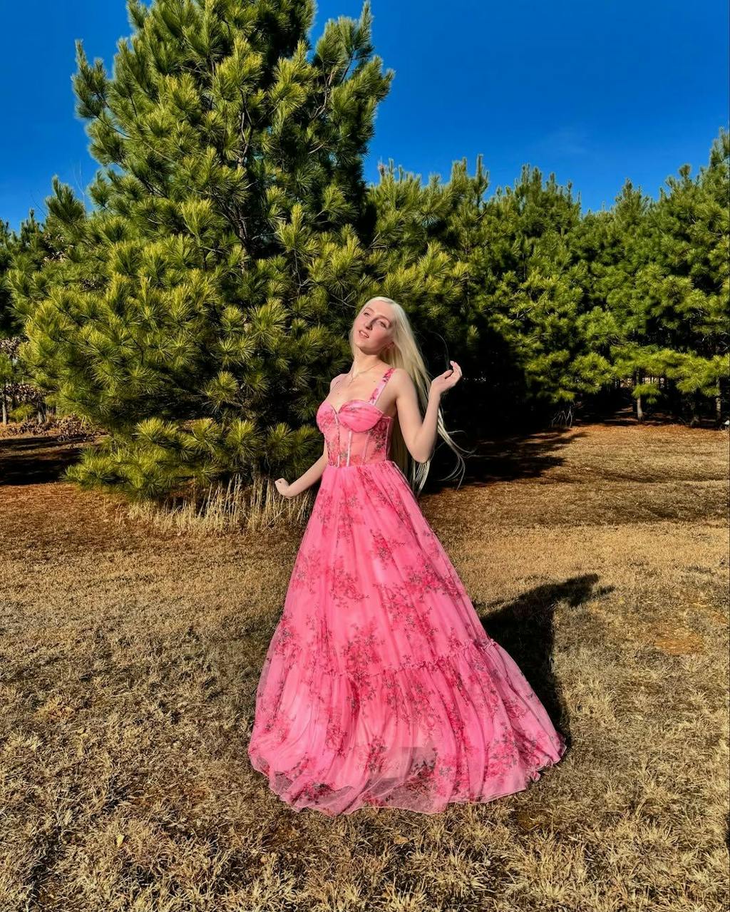 Blush Floral A Line Spaghetti Straps Corset Prom Dress