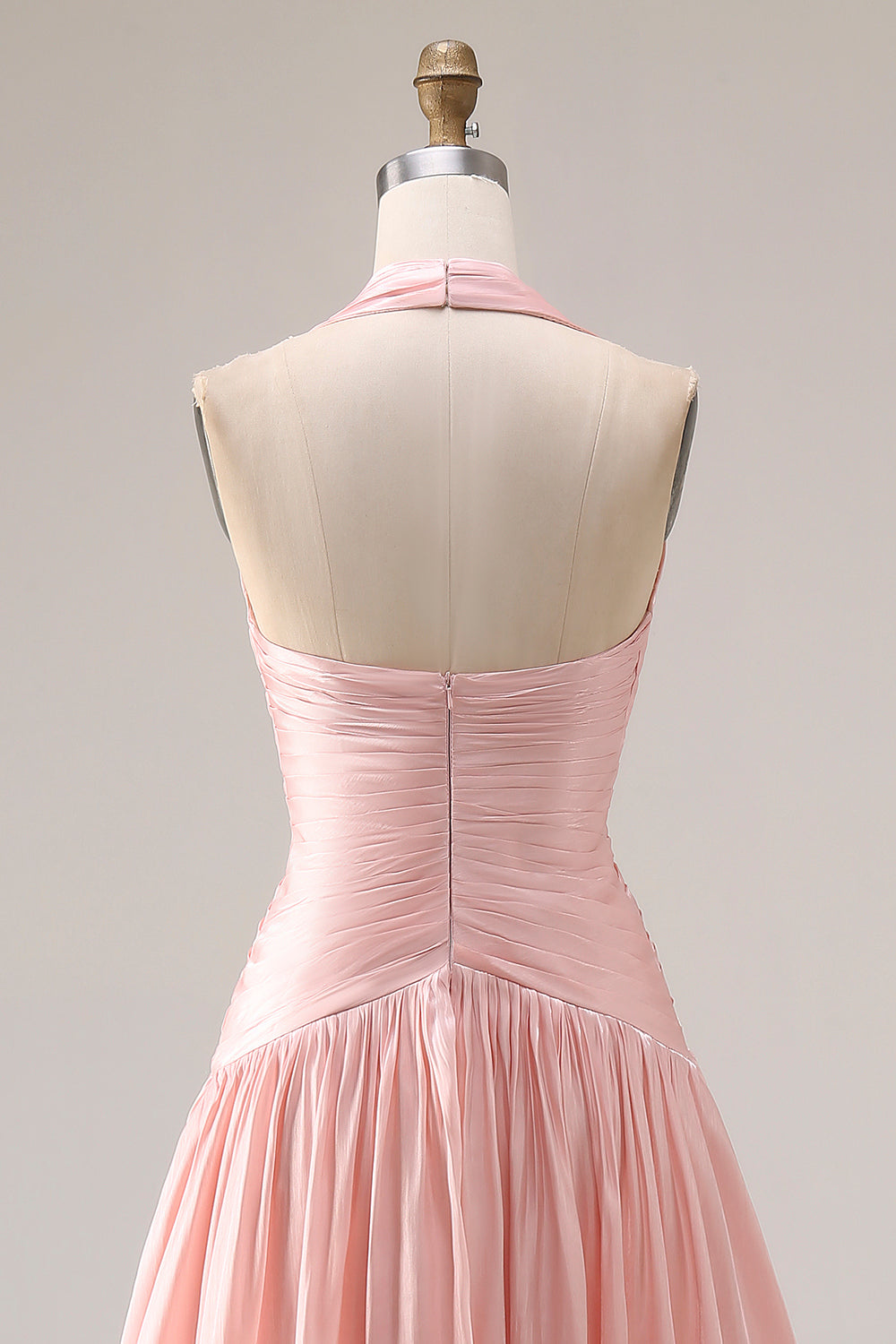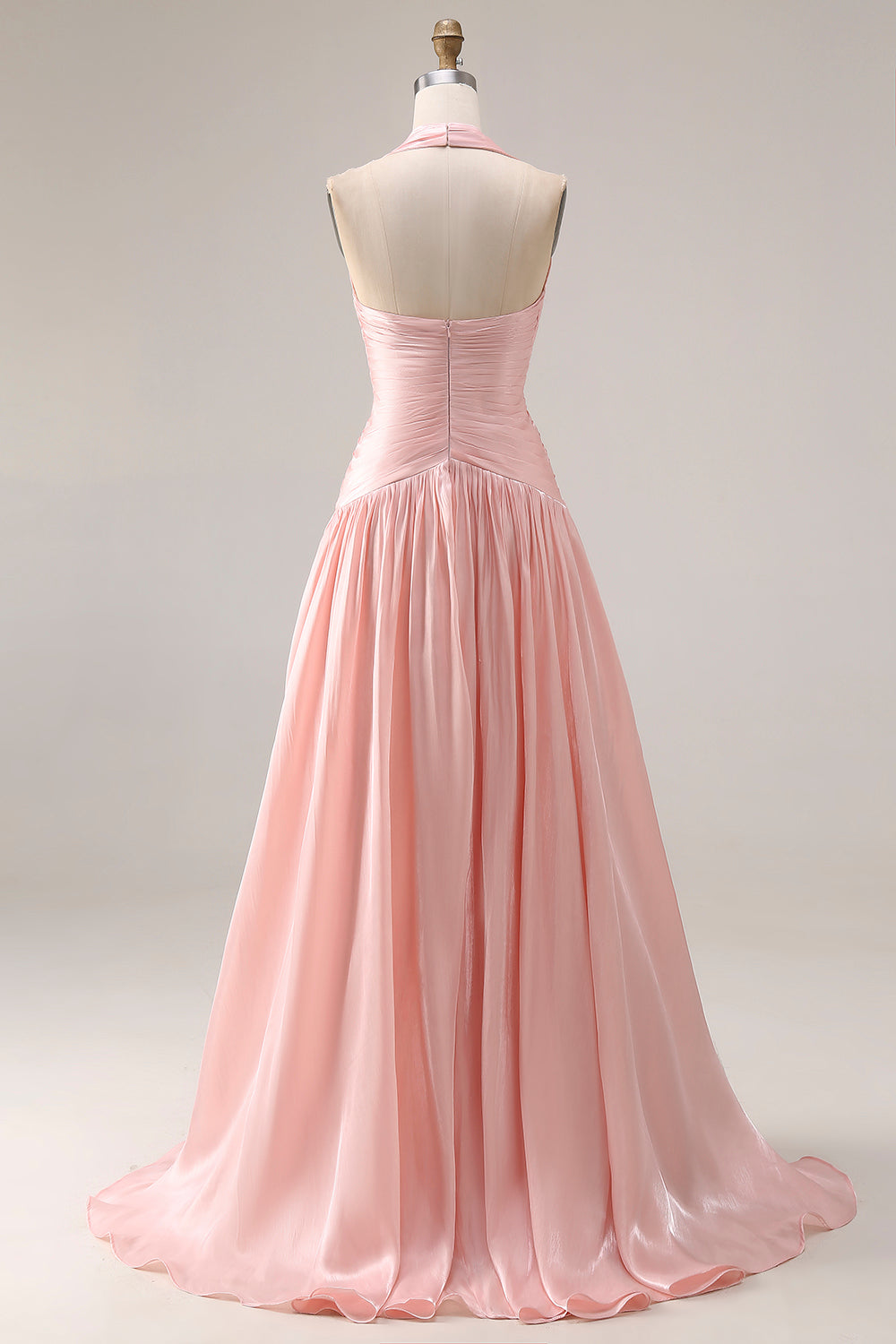 Blush Pink Pleated A Line Halter Long Prom Dress with Slit