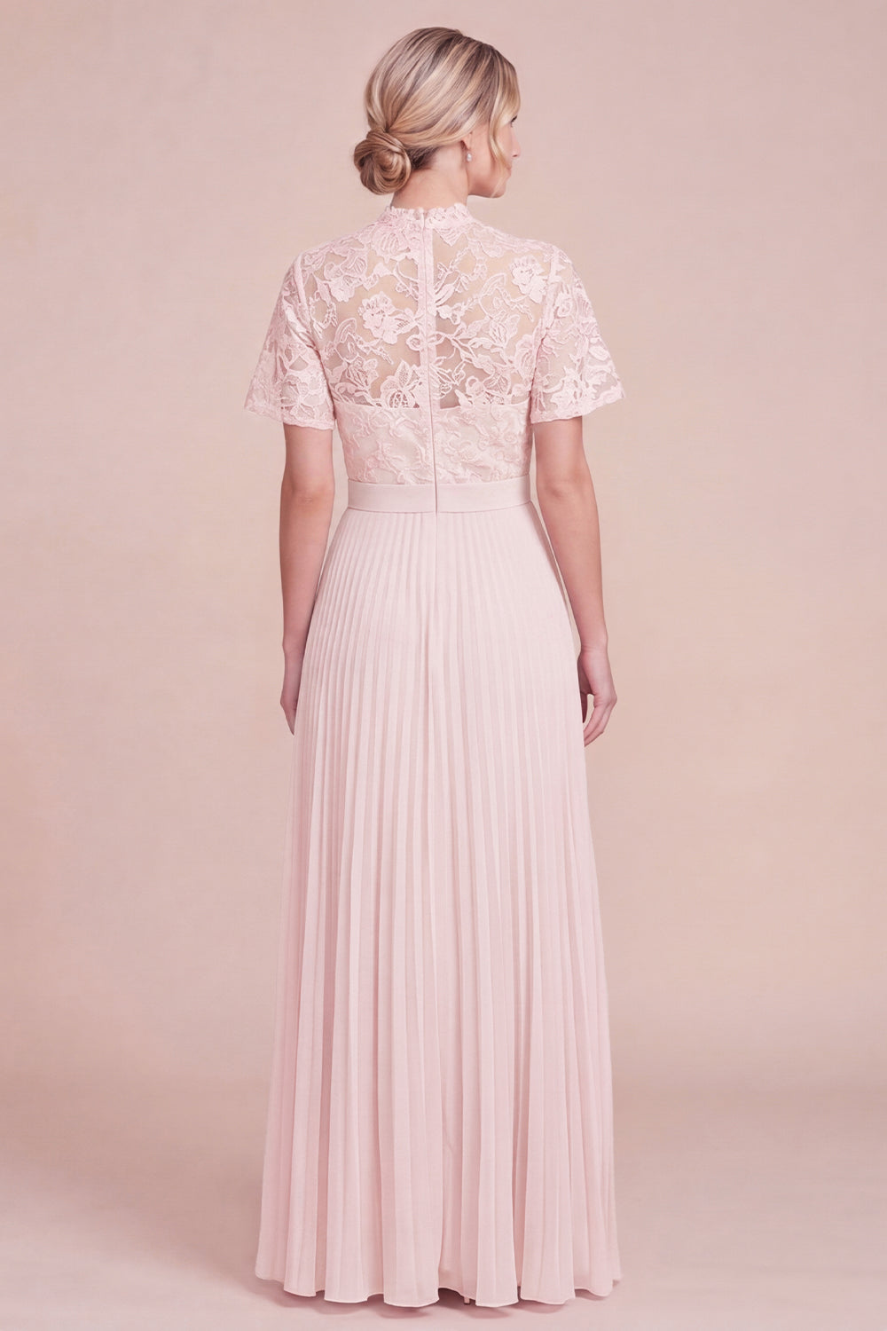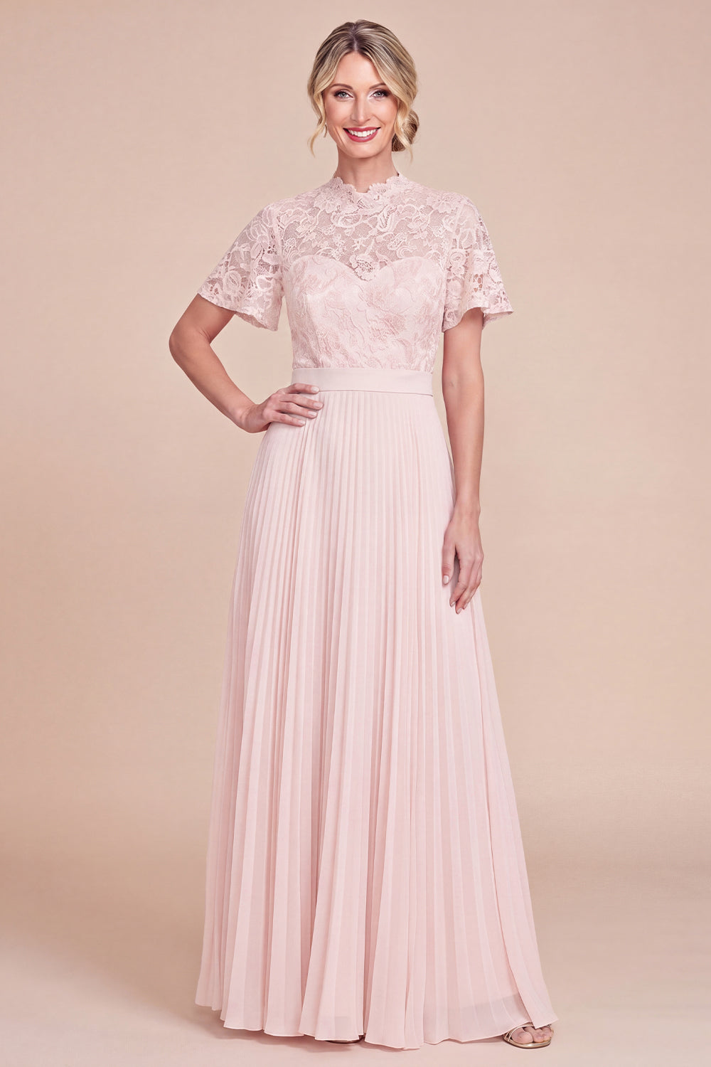 Blush Pink Pleated Mum Of the Bride Dress with Short Sleeves