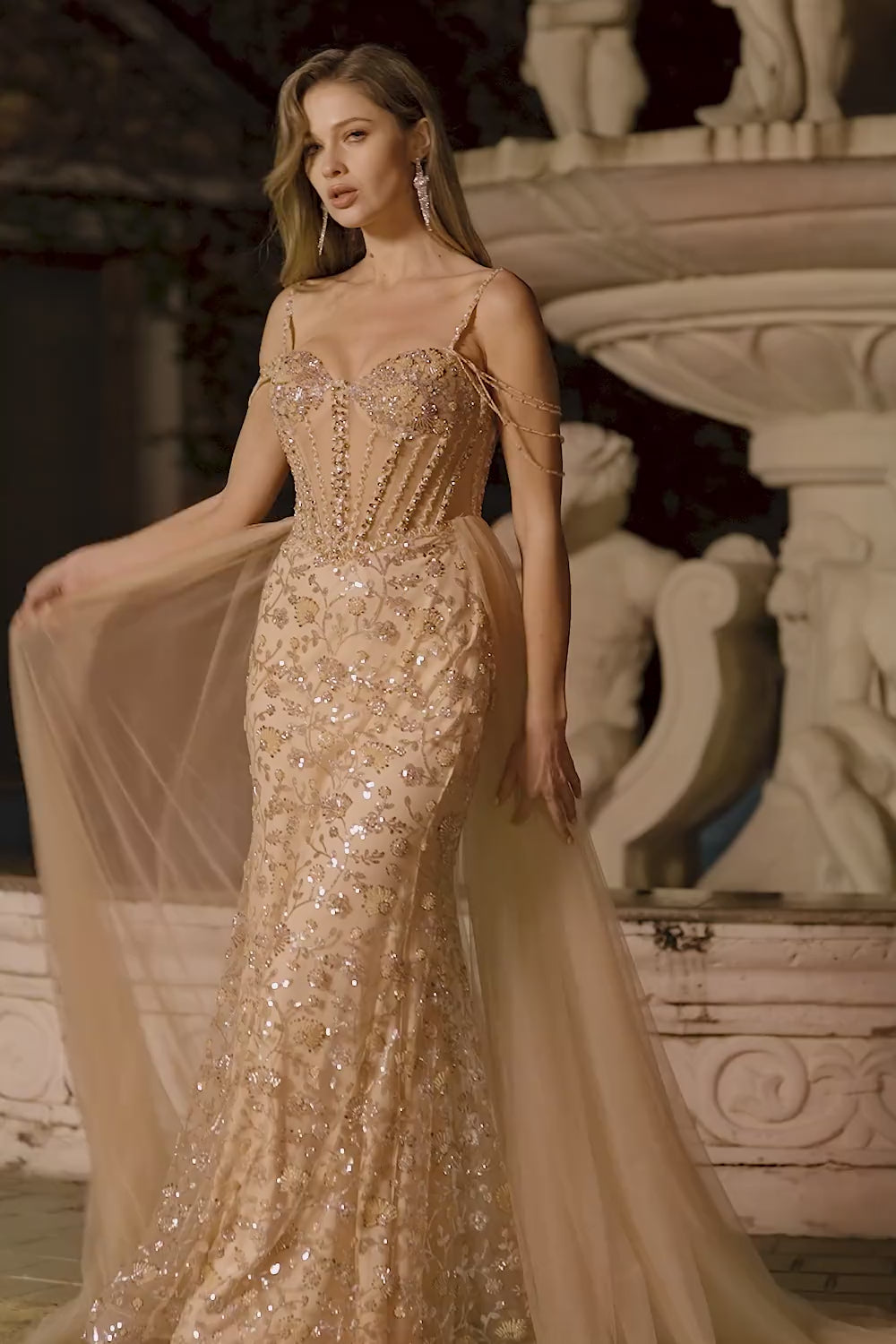 Champagne Sequin Mermaid Corset Prom Dress with Overlay