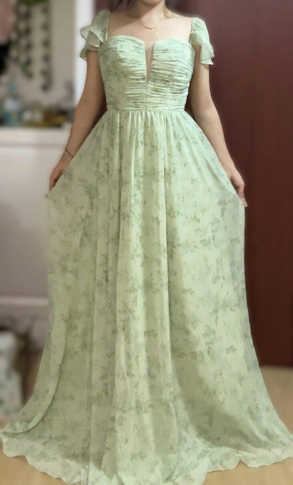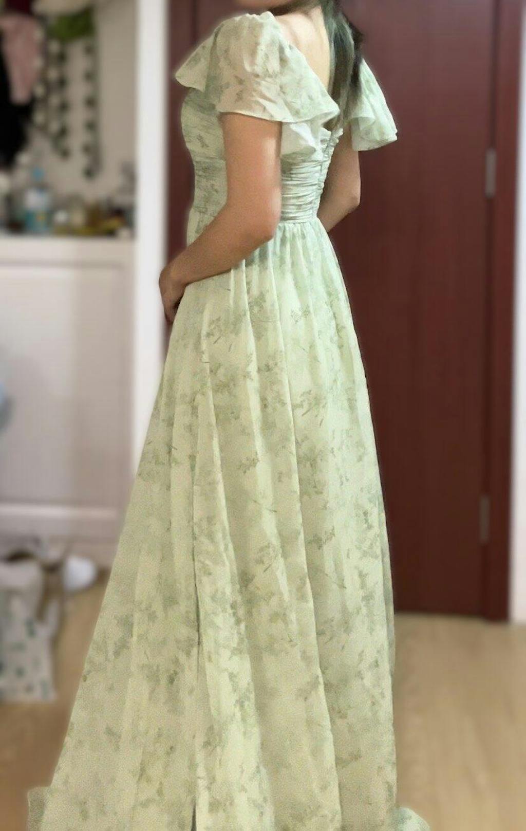 This dress is so cute!!! I'm 163 cm tall, weigh 50 catties, and have a 35-inch bust. I bought size 8, and the size is perfect. The dress design is also beautiful; I love the slit. The fabric is of great quality, and it's very comfortable to wear. It has a lovely rustic, countryside feel to it.
