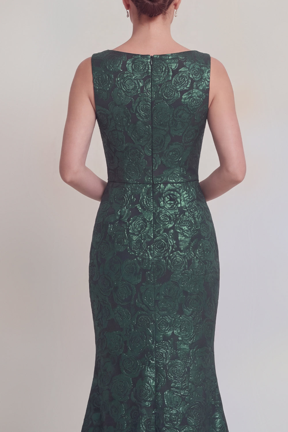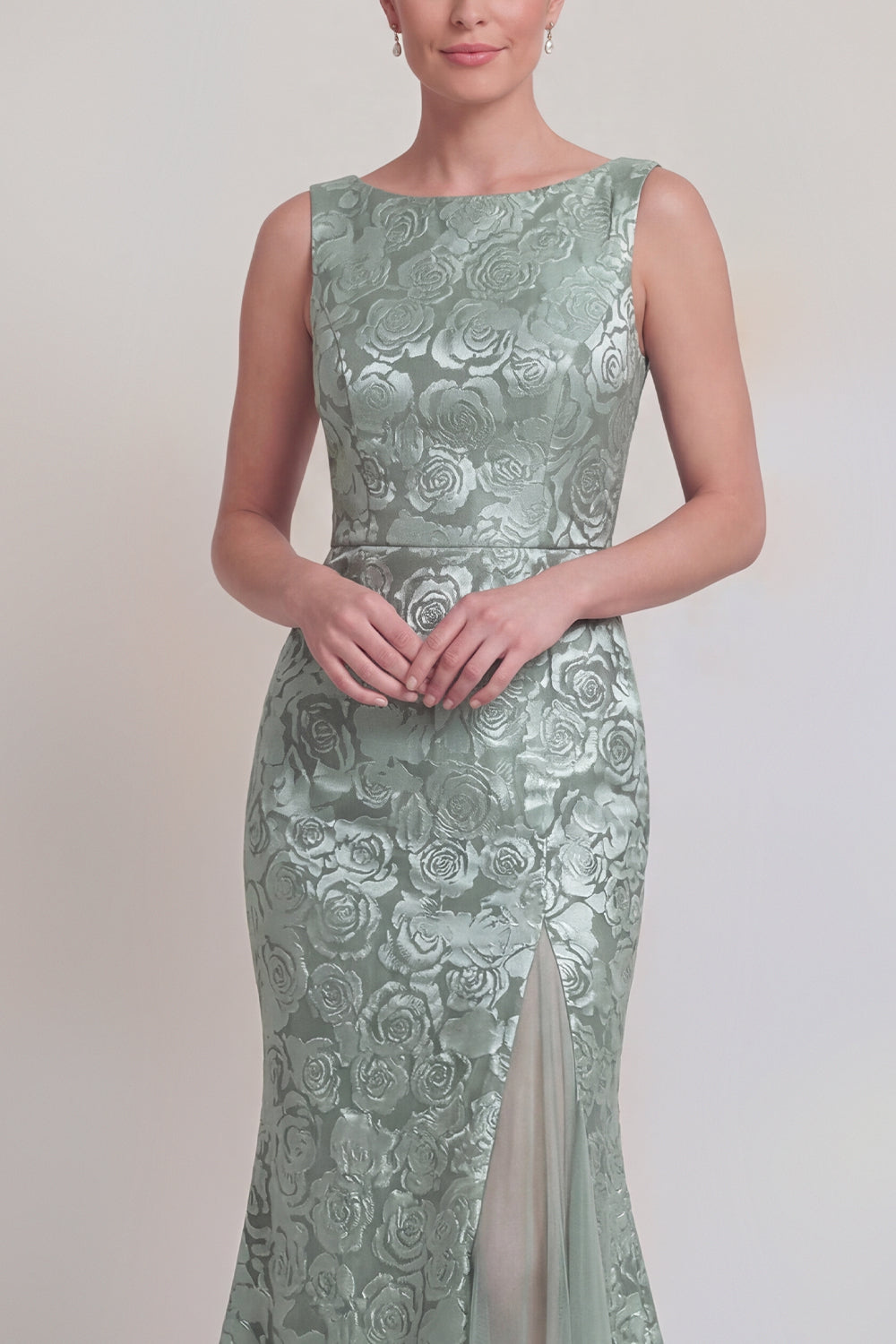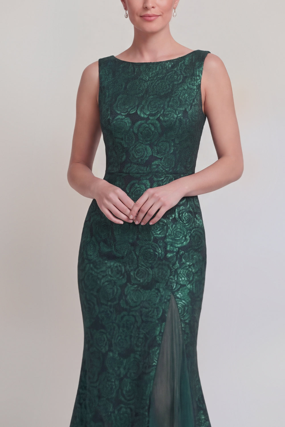 Jacquard Dark Green Mermaid Boat Neck Mum of the Bride Dress with Slit