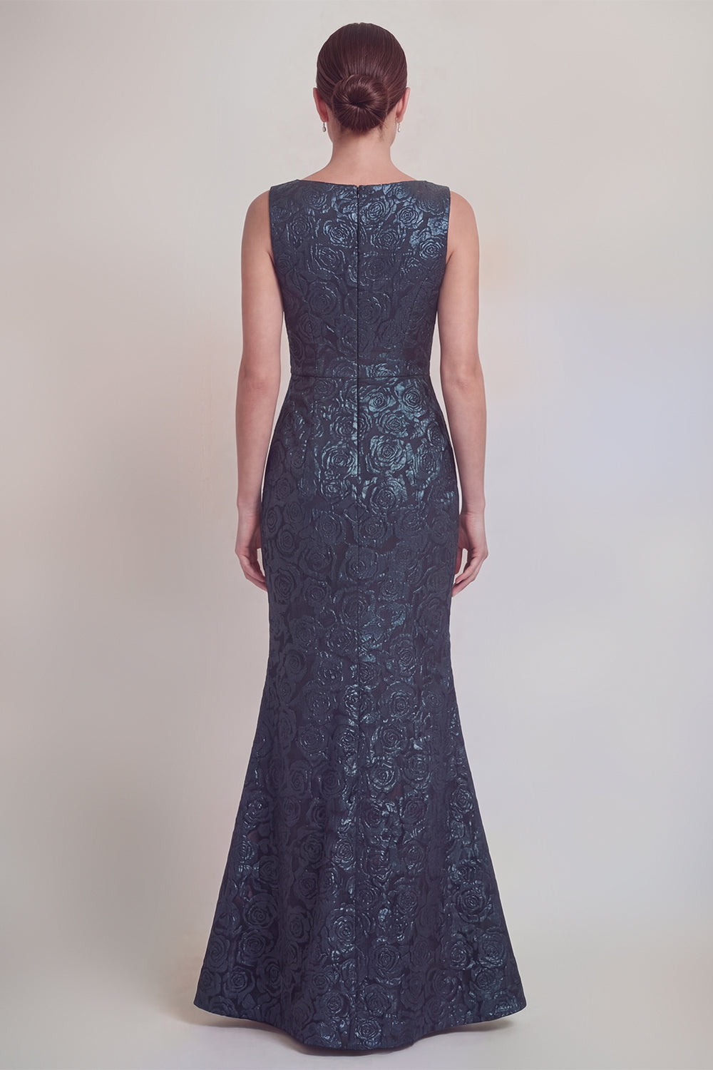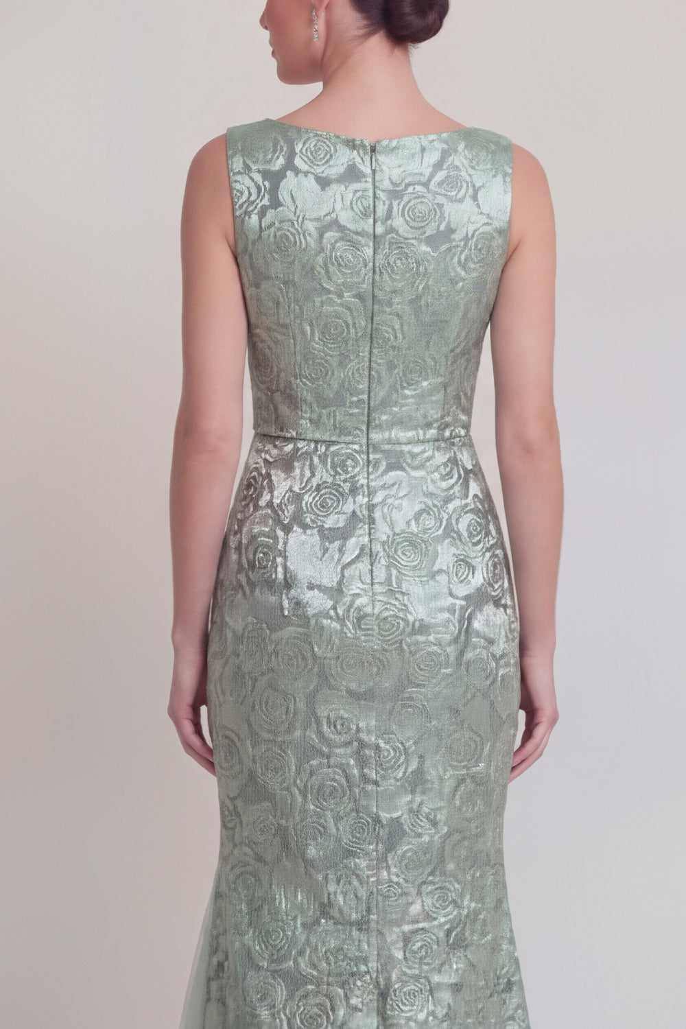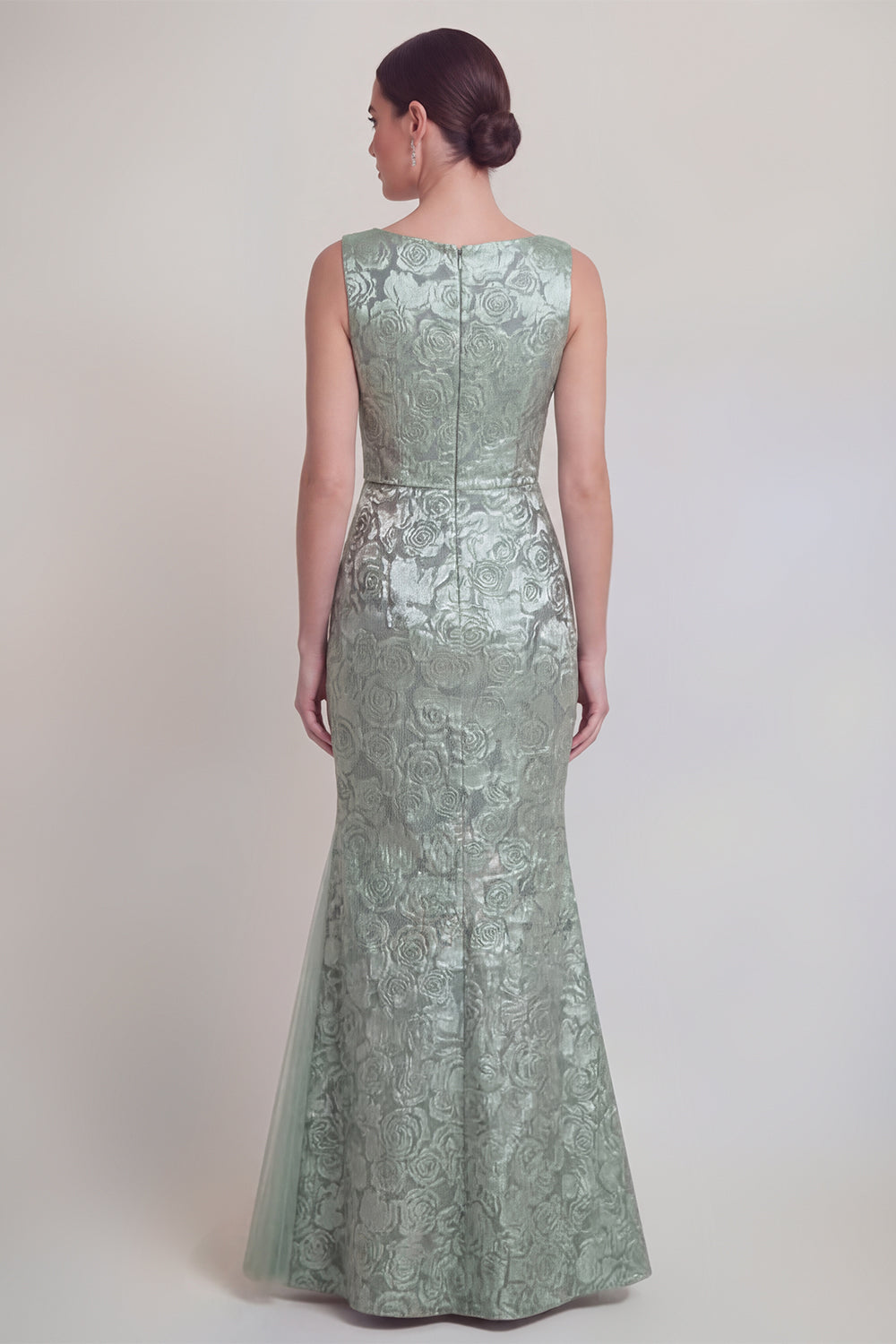 Jacquard Dark Green Mermaid Boat Neck Mum of the Bride Dress with Slit