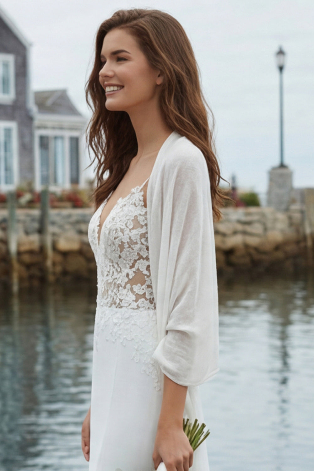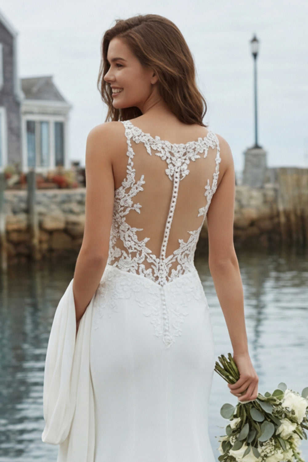 Mermaid Appliqued Ivory Long Wedding Dress with Slit