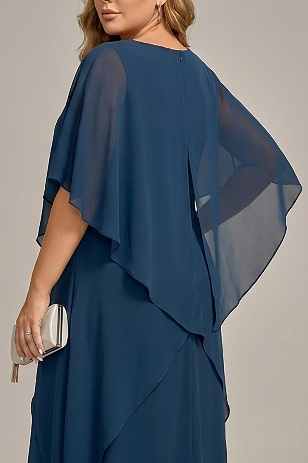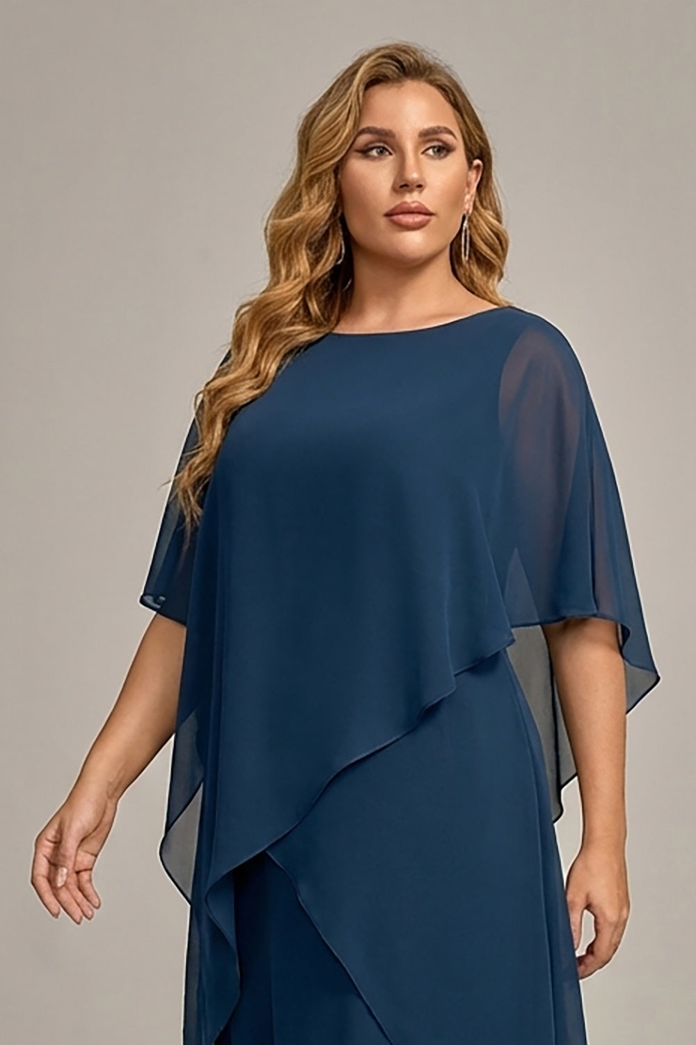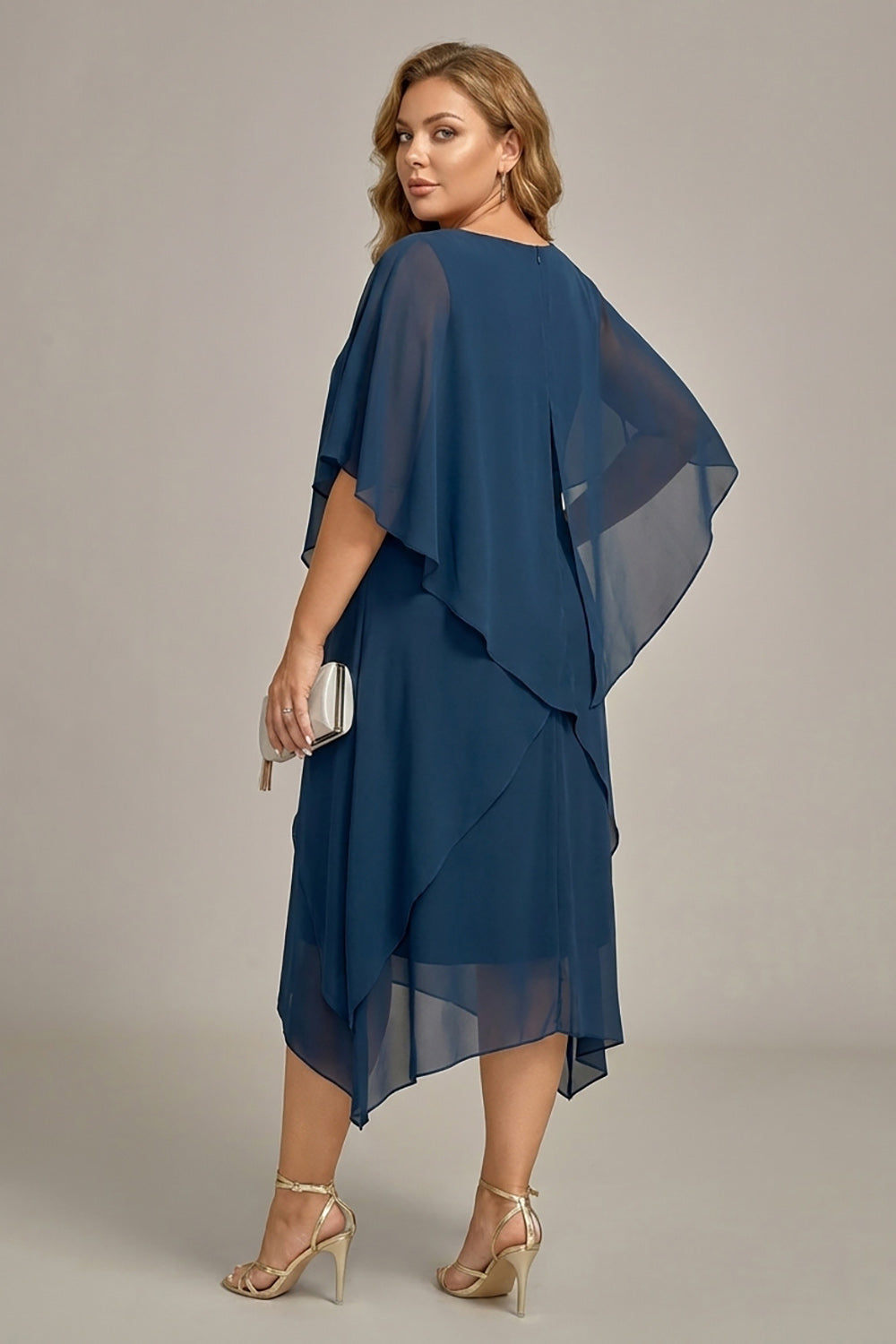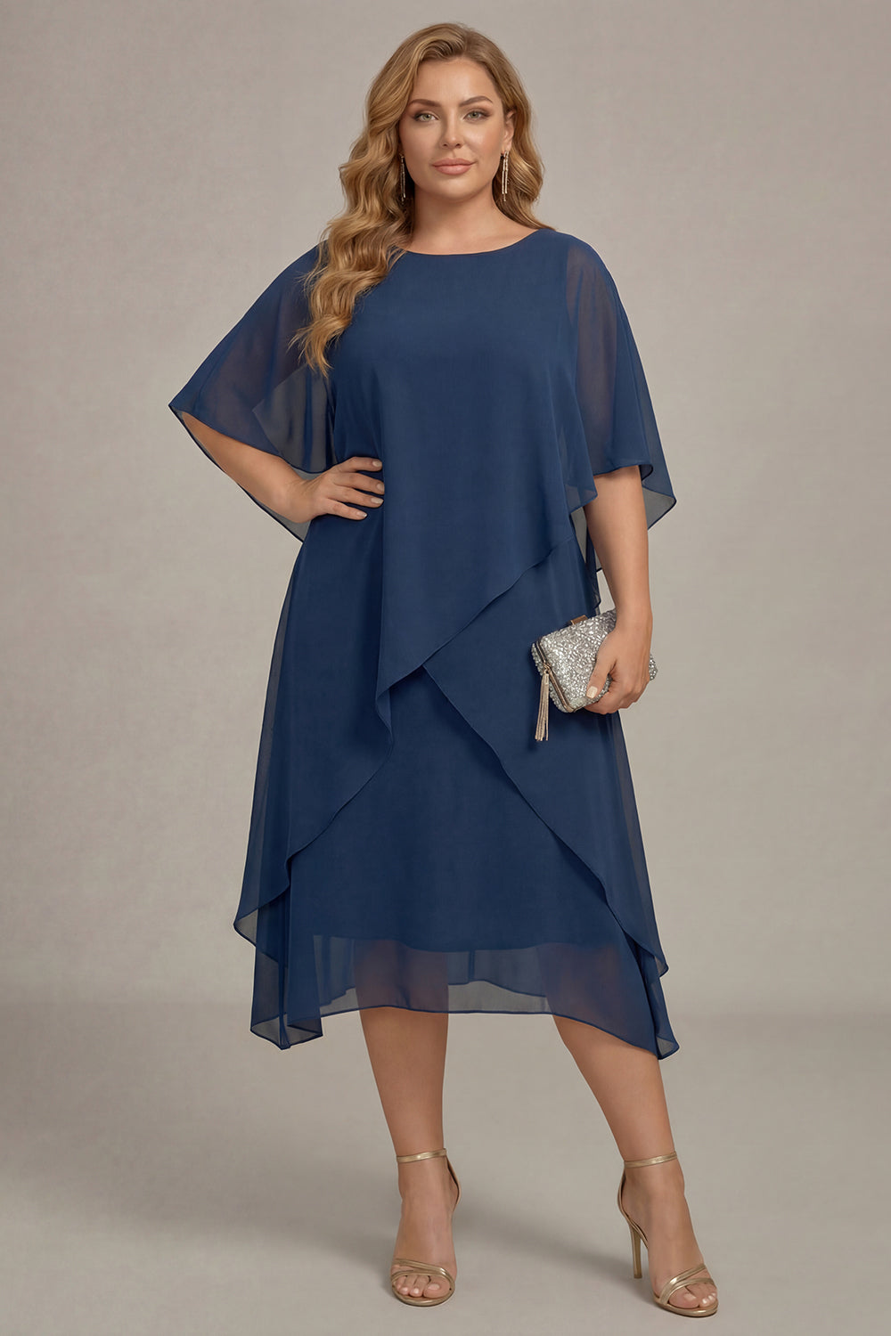 Navy Plus Size Chiffon A Line Midi Mother of the Bride Dress