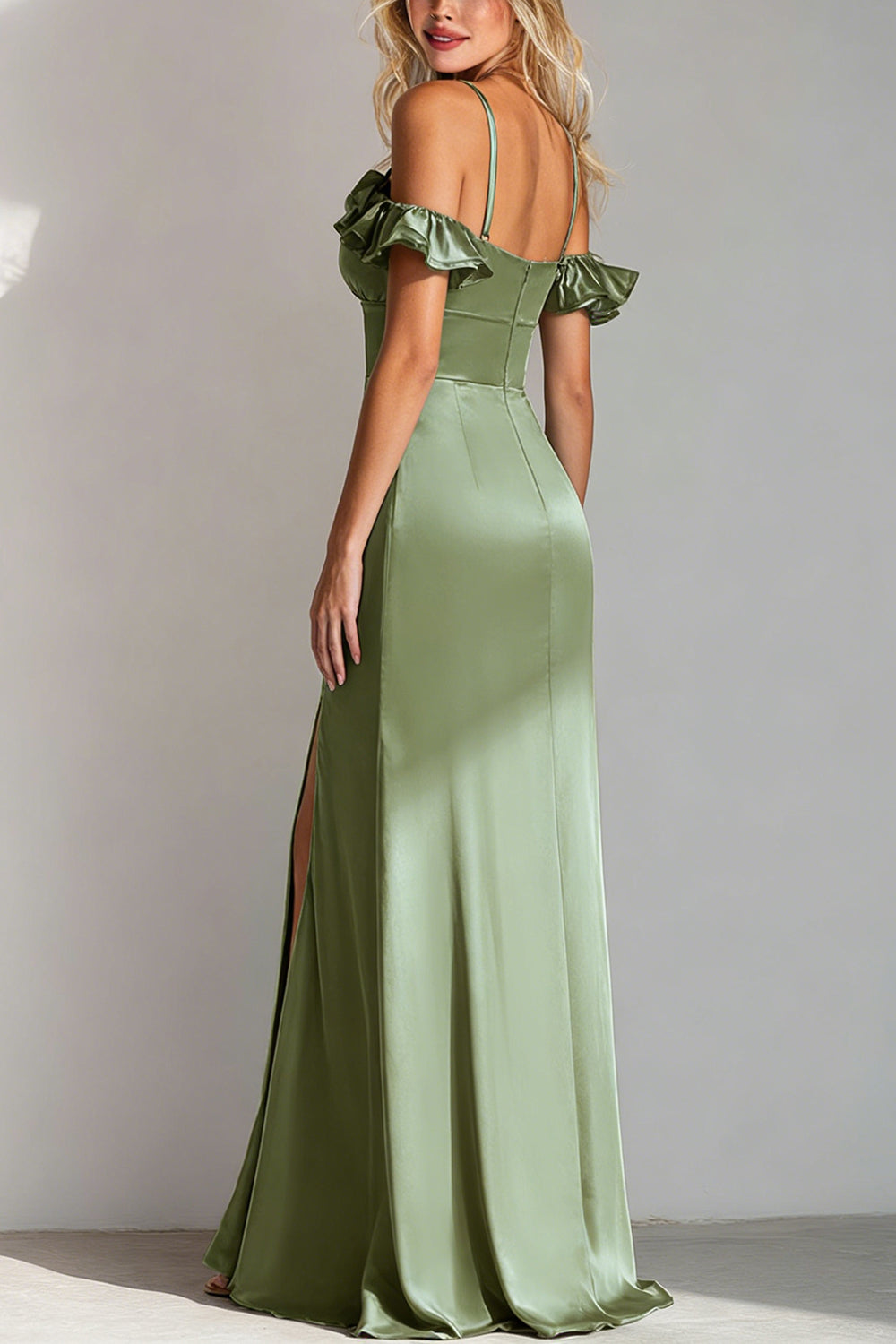 Sage Green Cold Shoulder A Line Long Bridesmaid Dress With Slit
