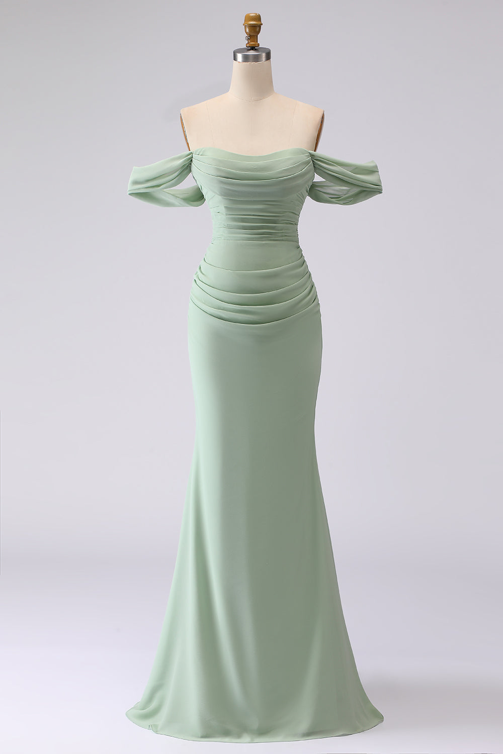 Sage Green Off the Shoulder Mermaid Long Bridesmaid Dress