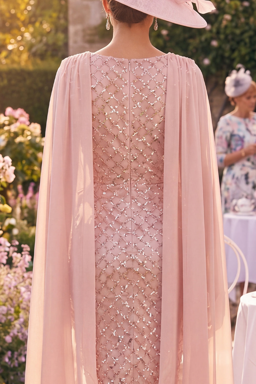 Sequin Blush Sheath Mum of the Bride Dress with Cape Sleeves