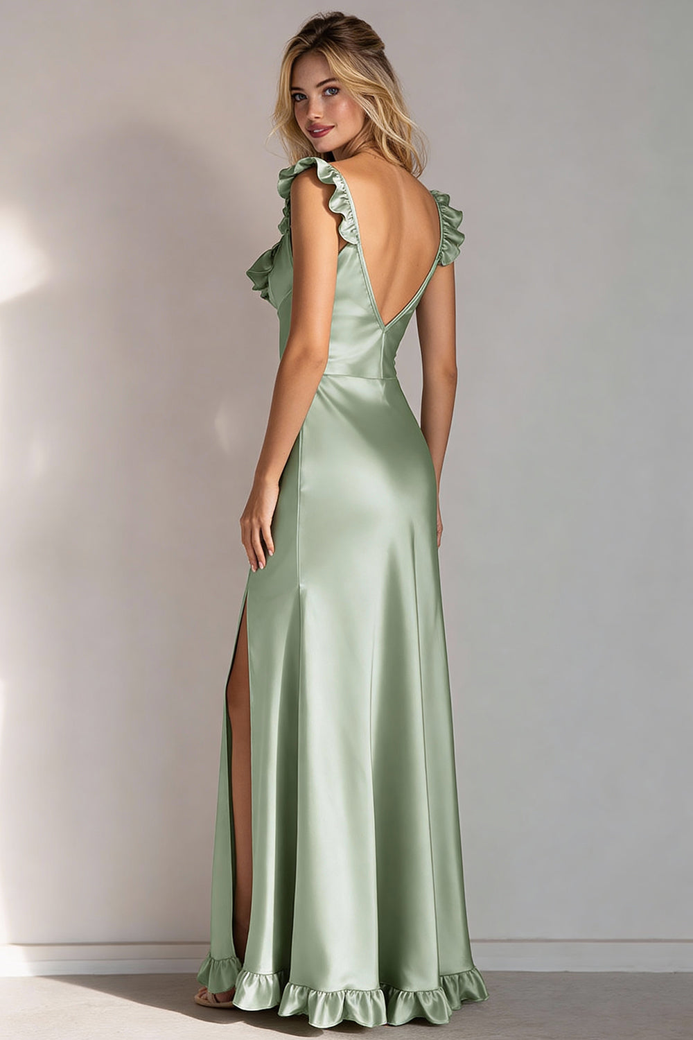 Sheath Light Green V-Neck Long Bridesmaid Dress With Slit
