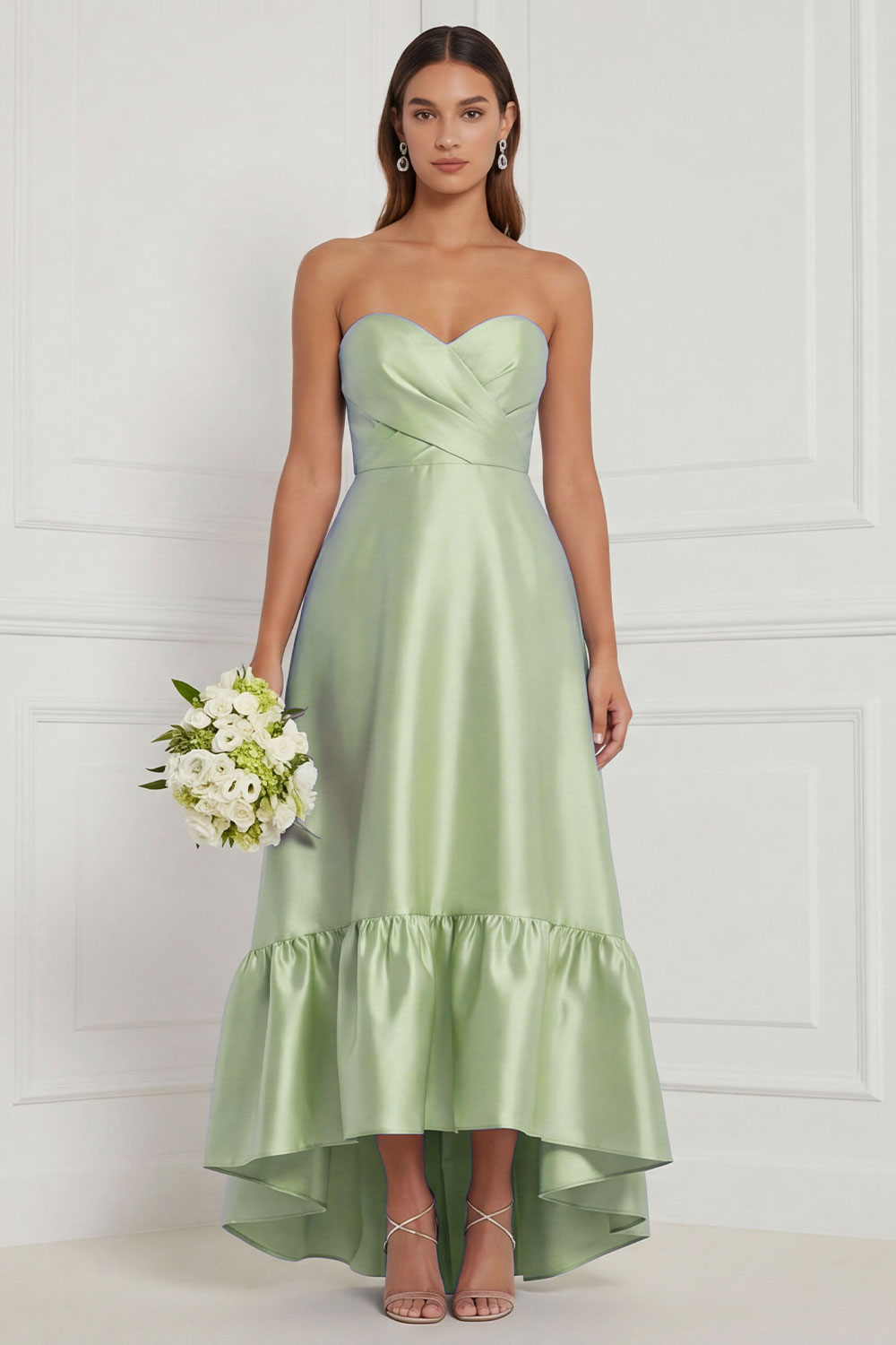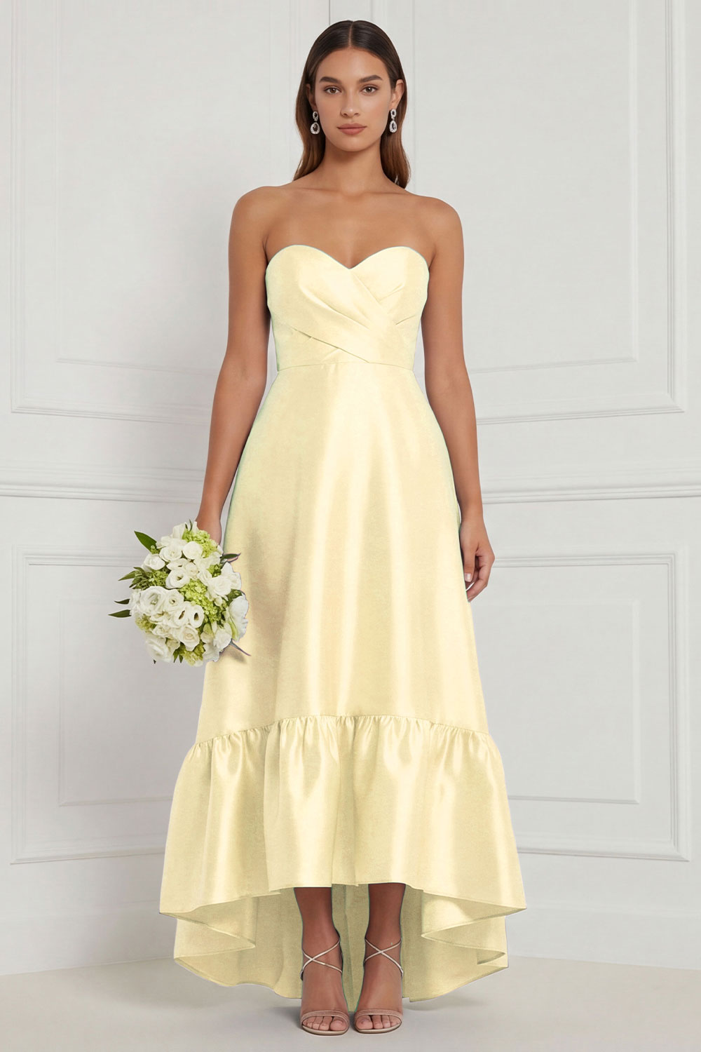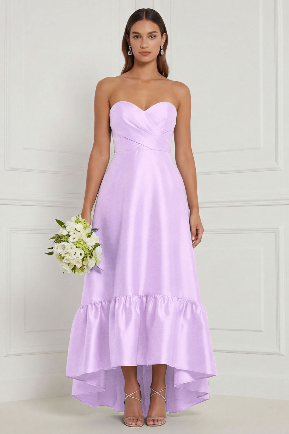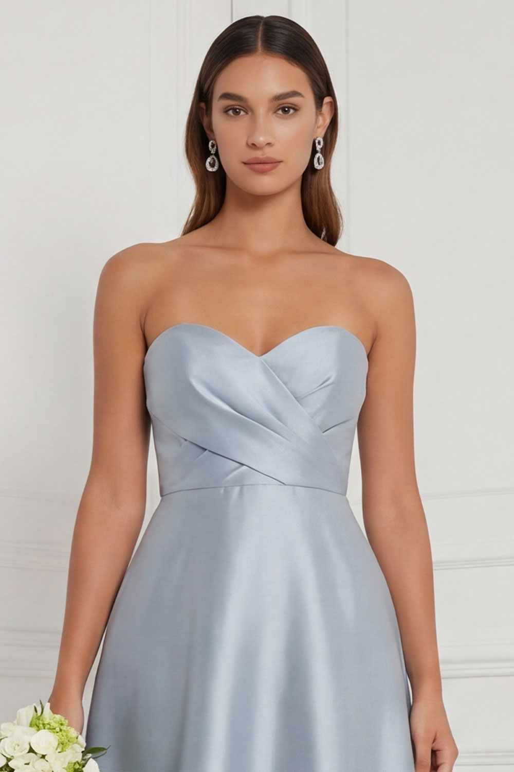 Sky Blue Sweetheart Ruched High-Low Bridesmaid Dress