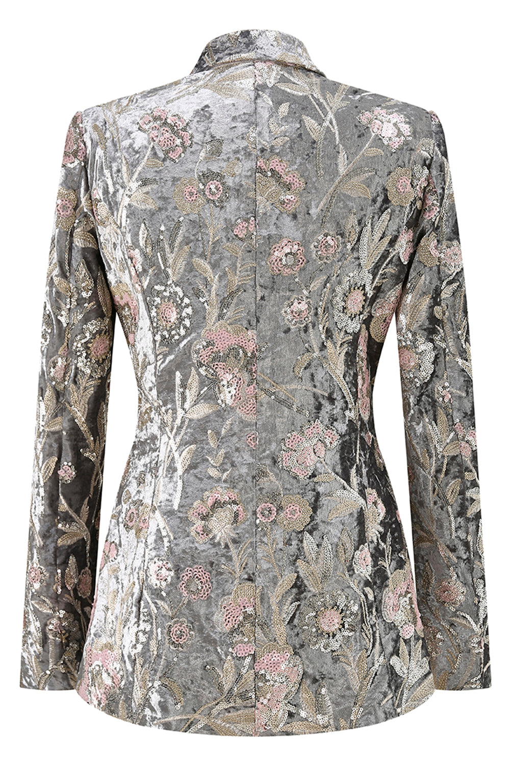 Sparkly Grey 2 Piece Floral Peak Lapel Women Prom Suit