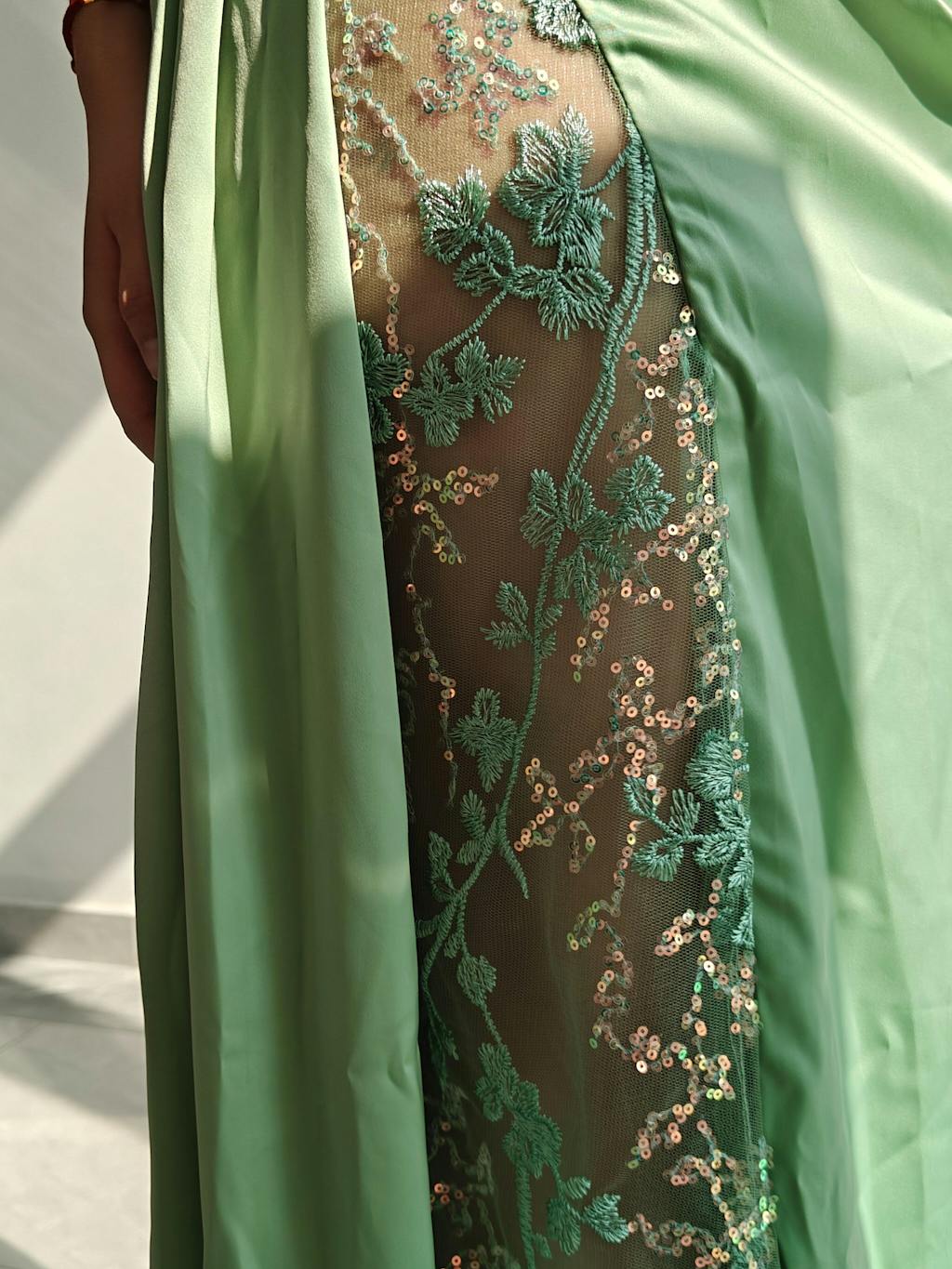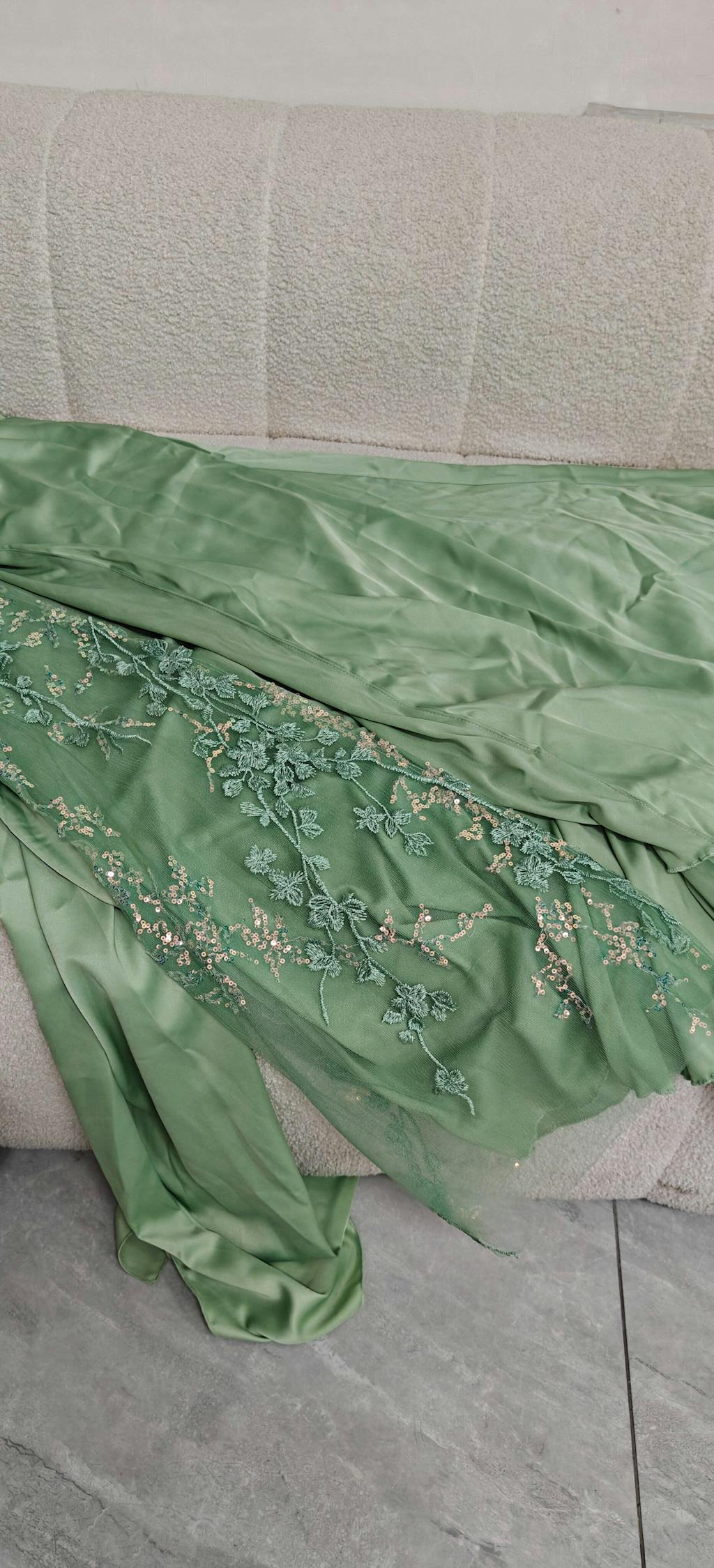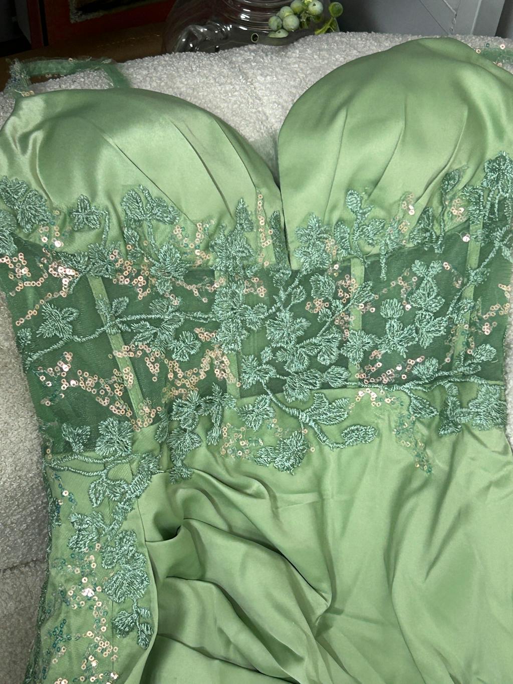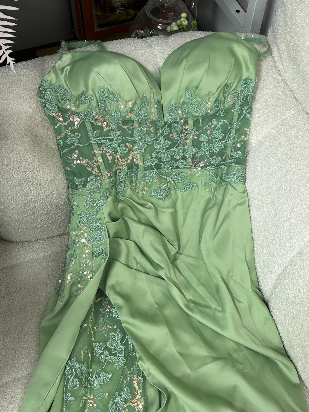 Sparkly Light Green Mermaid Appliqued Long Prom Dress with Slit