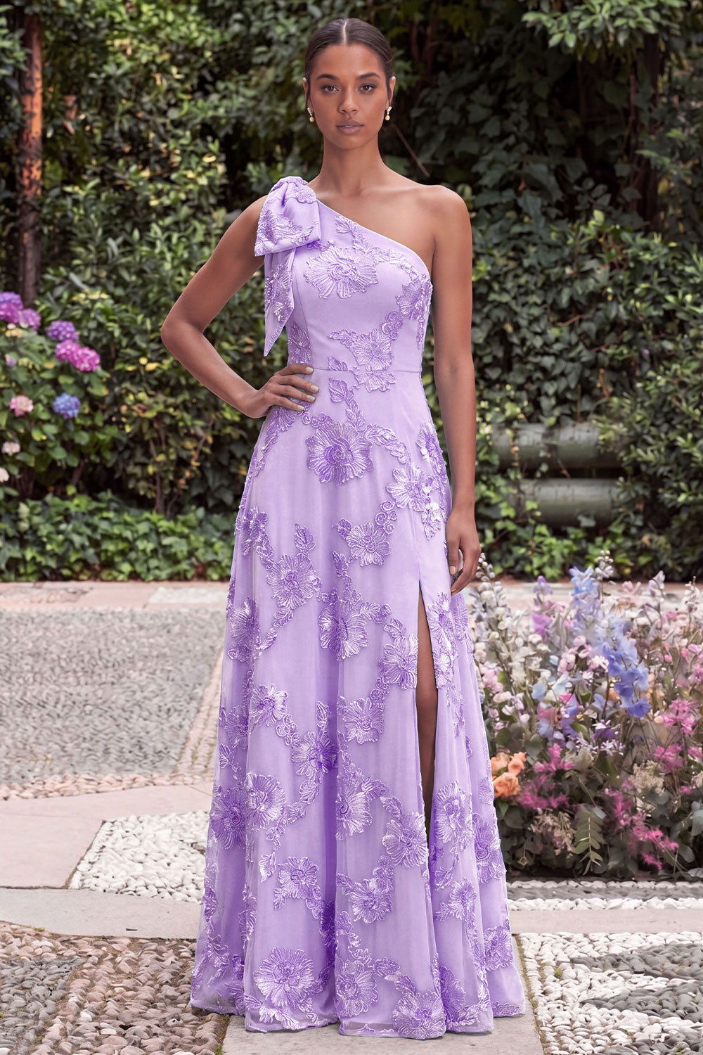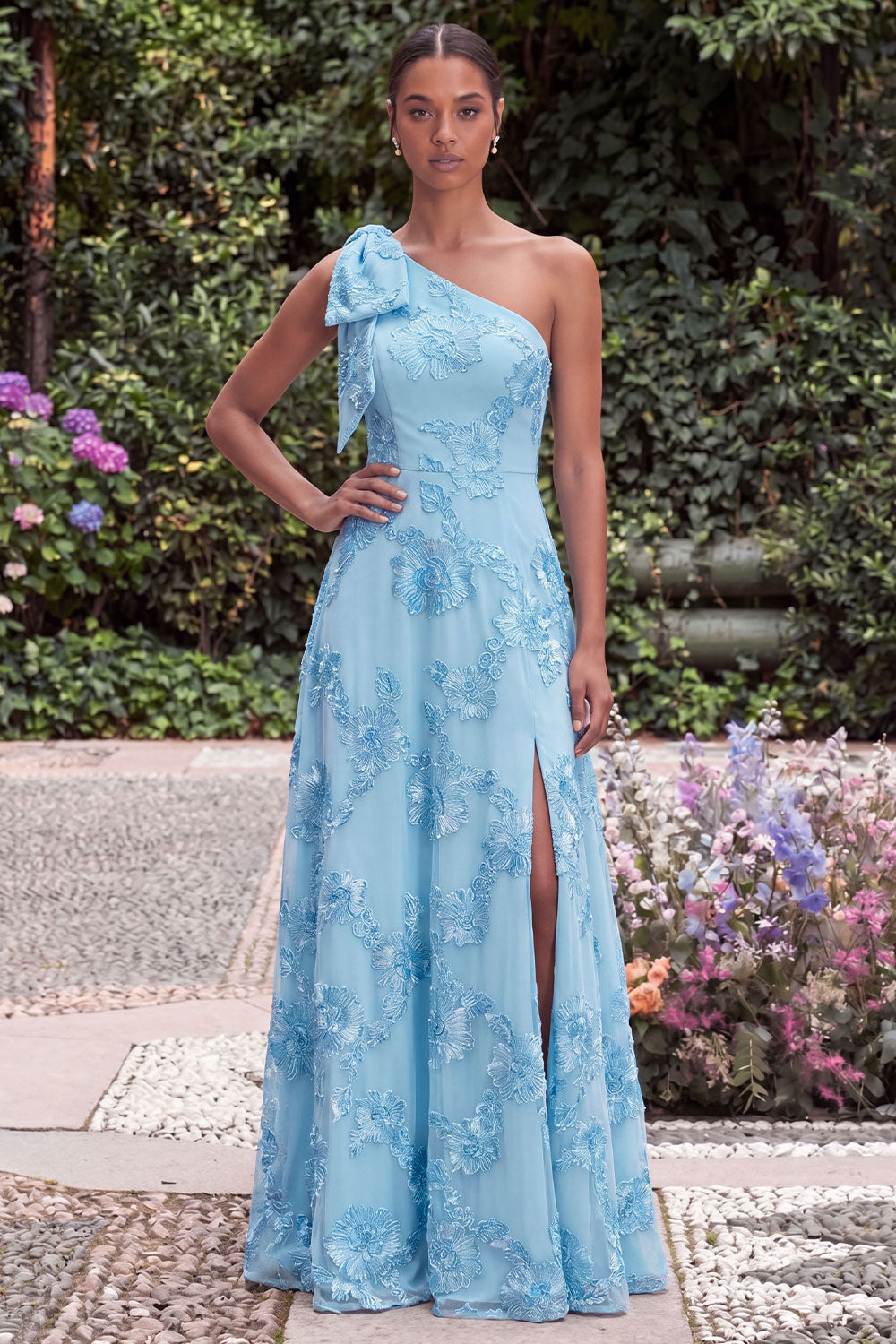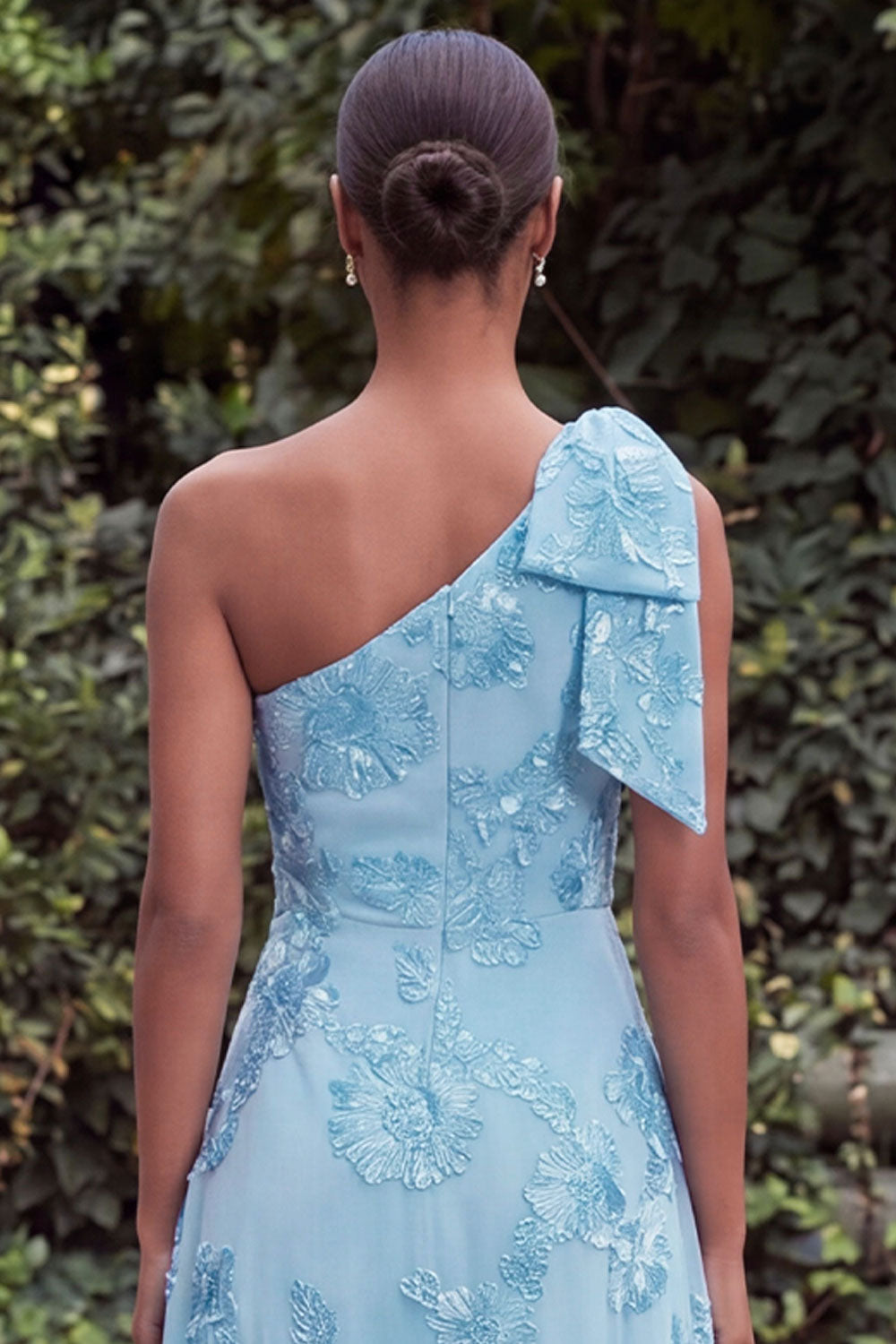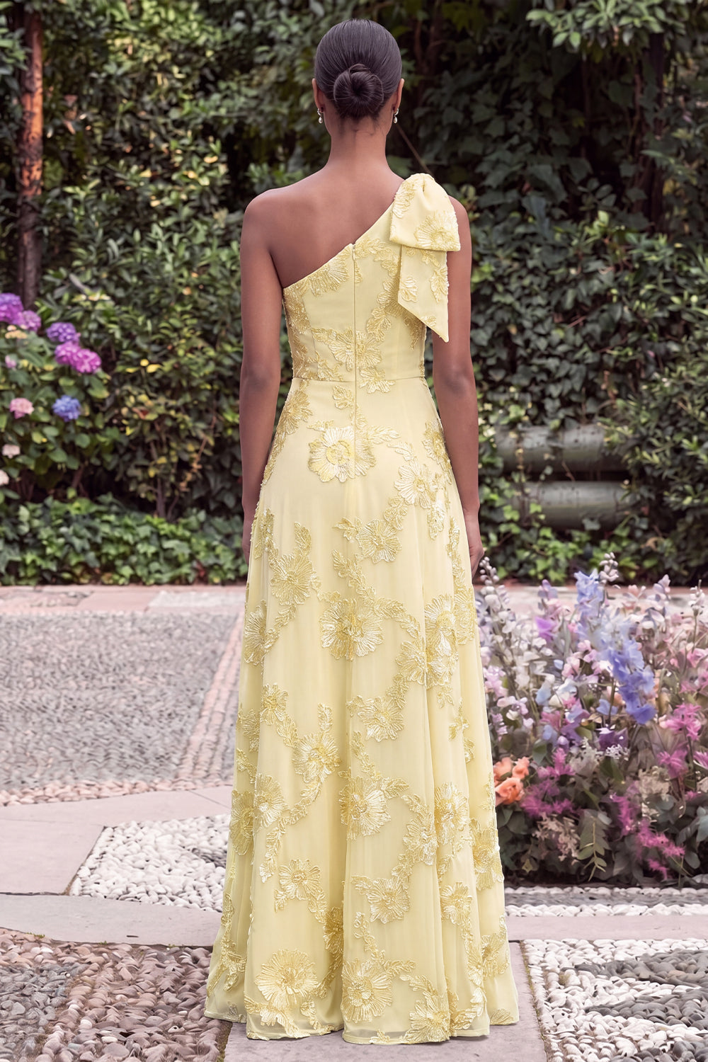 Yellow One Shoulder Floral Wedding Guest Dress with Slit