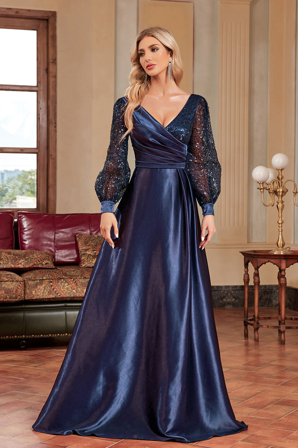 Navy Sequin Long Sleeves A Line Mother Of The Bride Dresse