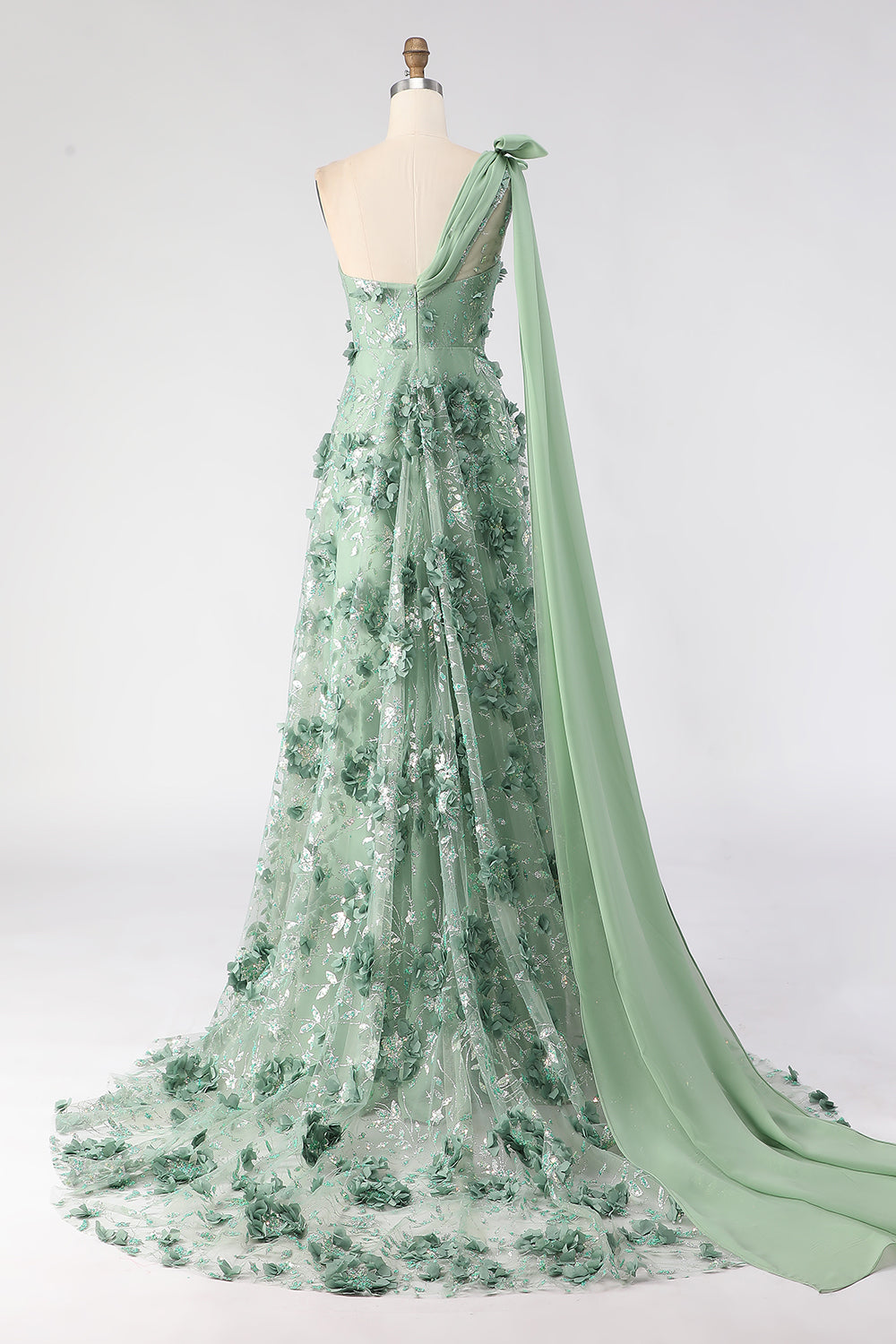 One Shoulder A Line Eucalyptus Prom Dress with Appliques