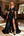 Black and White Polka Dot Ball Gown V Neck Prom Dress with Slit