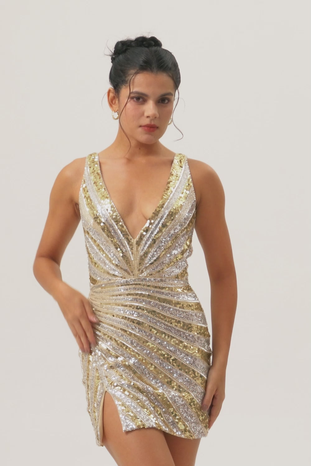 Sparkly Golden Bodycon Sequins V-Neck Short Prom Dress