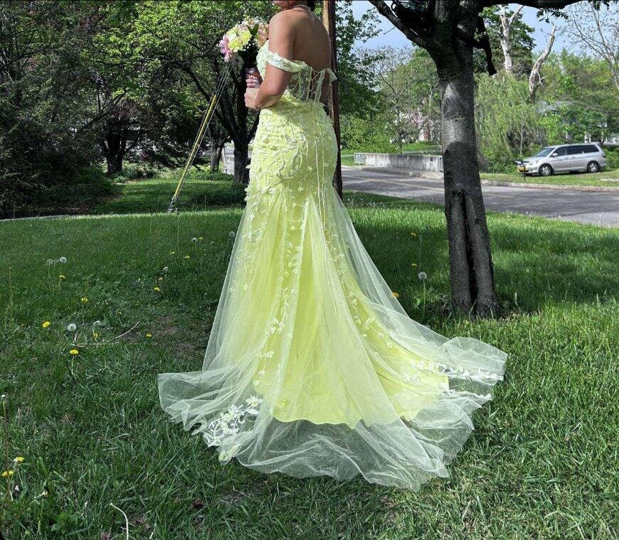 Blue Mermaid Off the Shoulder Floral Corset Prom Dress with Sequins