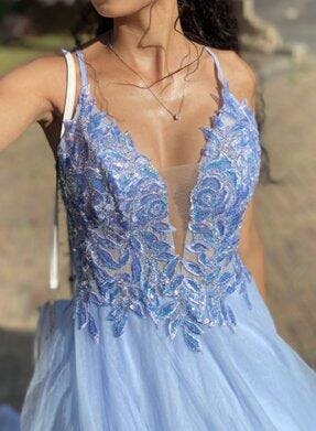 Green Tulle A Line Sequins Long Prom Dress with Lace up Back