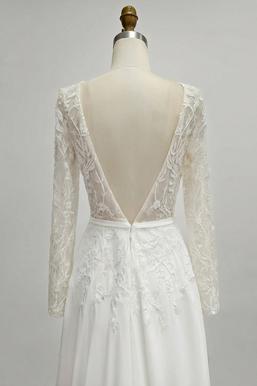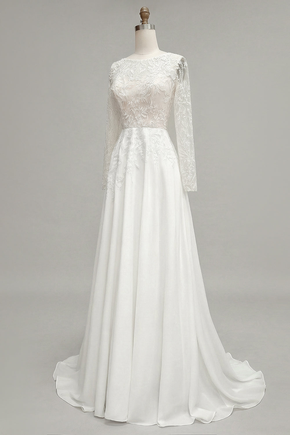 Ivory Bateau Neck A Line Beaded Lace Wedding Dress