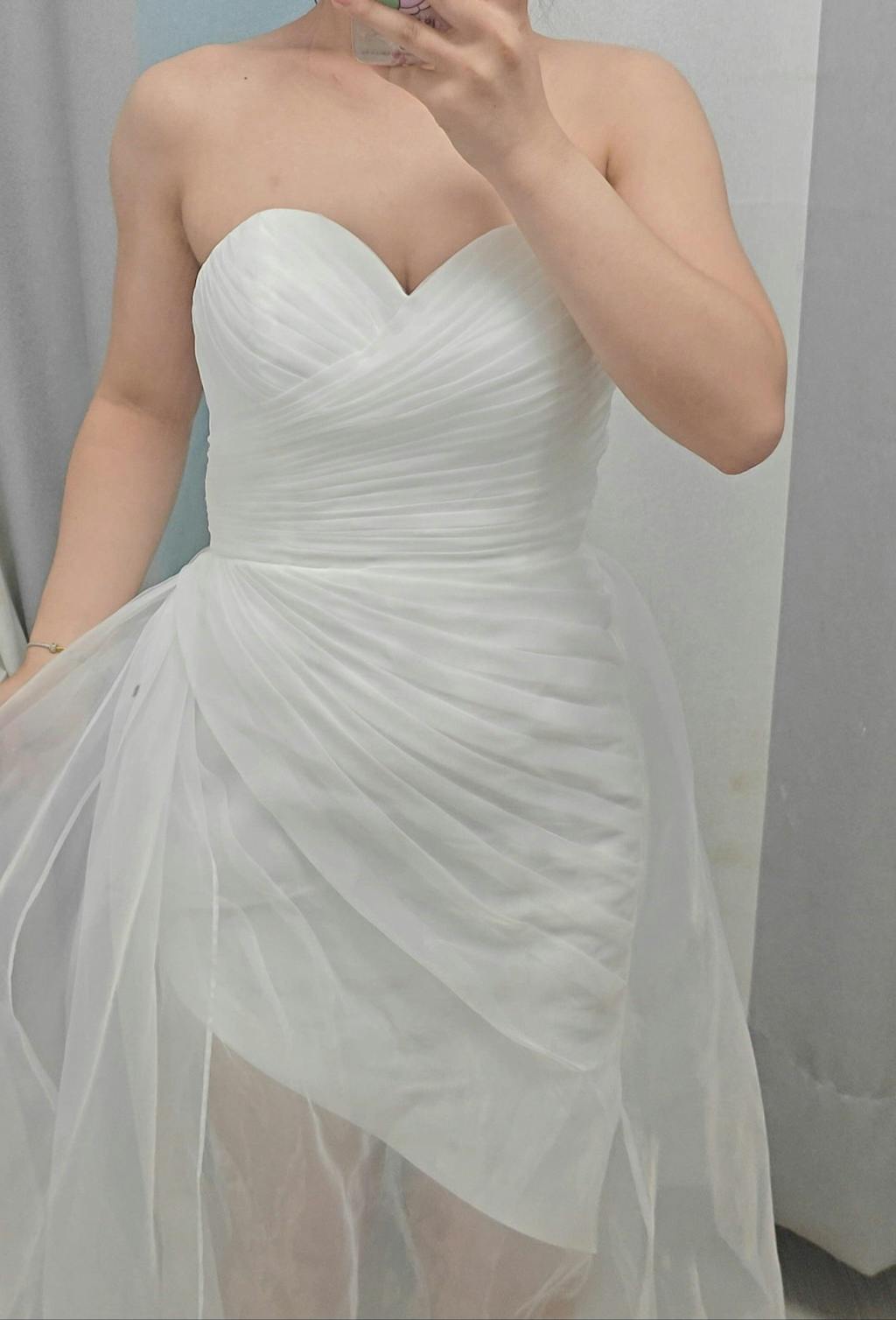 Sweetheart White Ruched A Line Engagement Dress With Slit