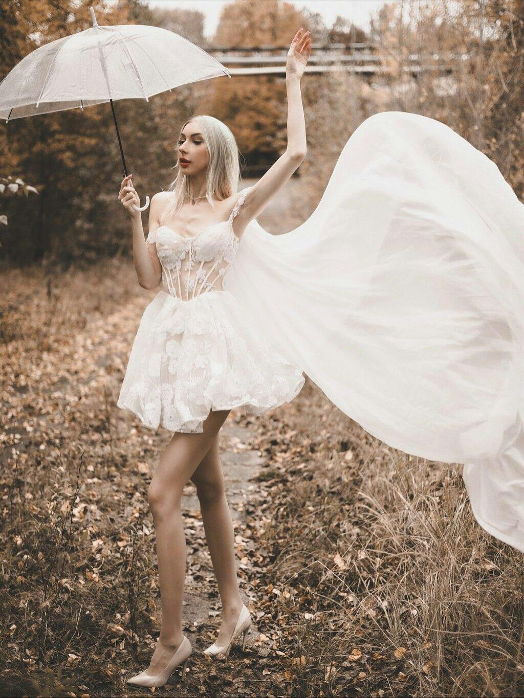 This dress is absolutely perfect! The delicate floral embroidery on the fabric combined with the fluffy skirt gives off a vibe that's both elegant and playful. The design is modern yet romantic, beautifully showcasing the feminine silhouette. I especially love the sheer lace bodice, which is both sexy and sophisticated, making it perfect for capturing that dreamy vibe in photos. Super Cute!!!Perfect for taking photos !!!love love