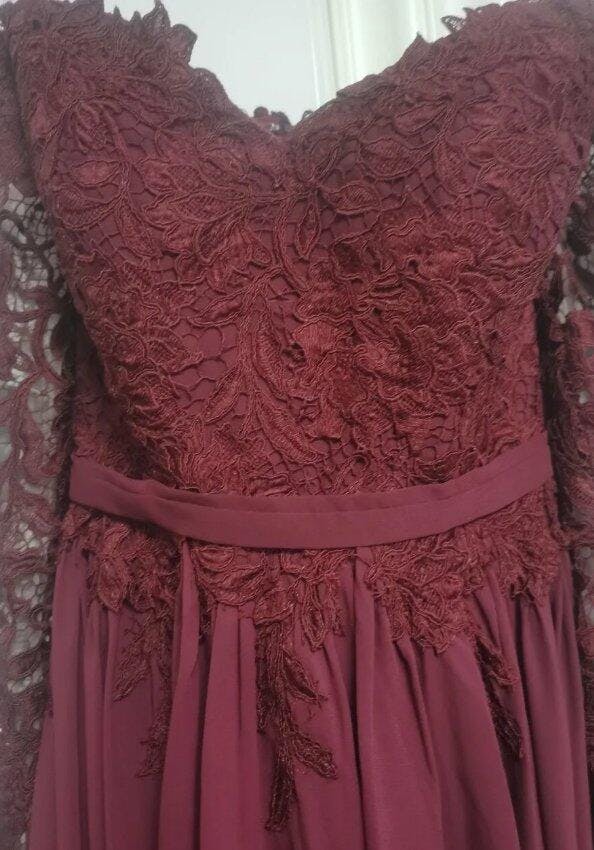Cabernet A Line Off the Shoulder Long Mother of the Bride Dress with Lace