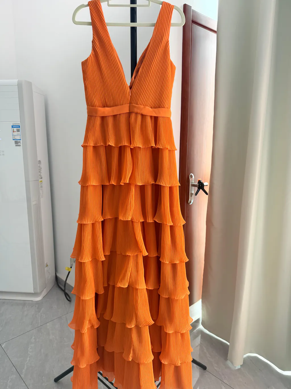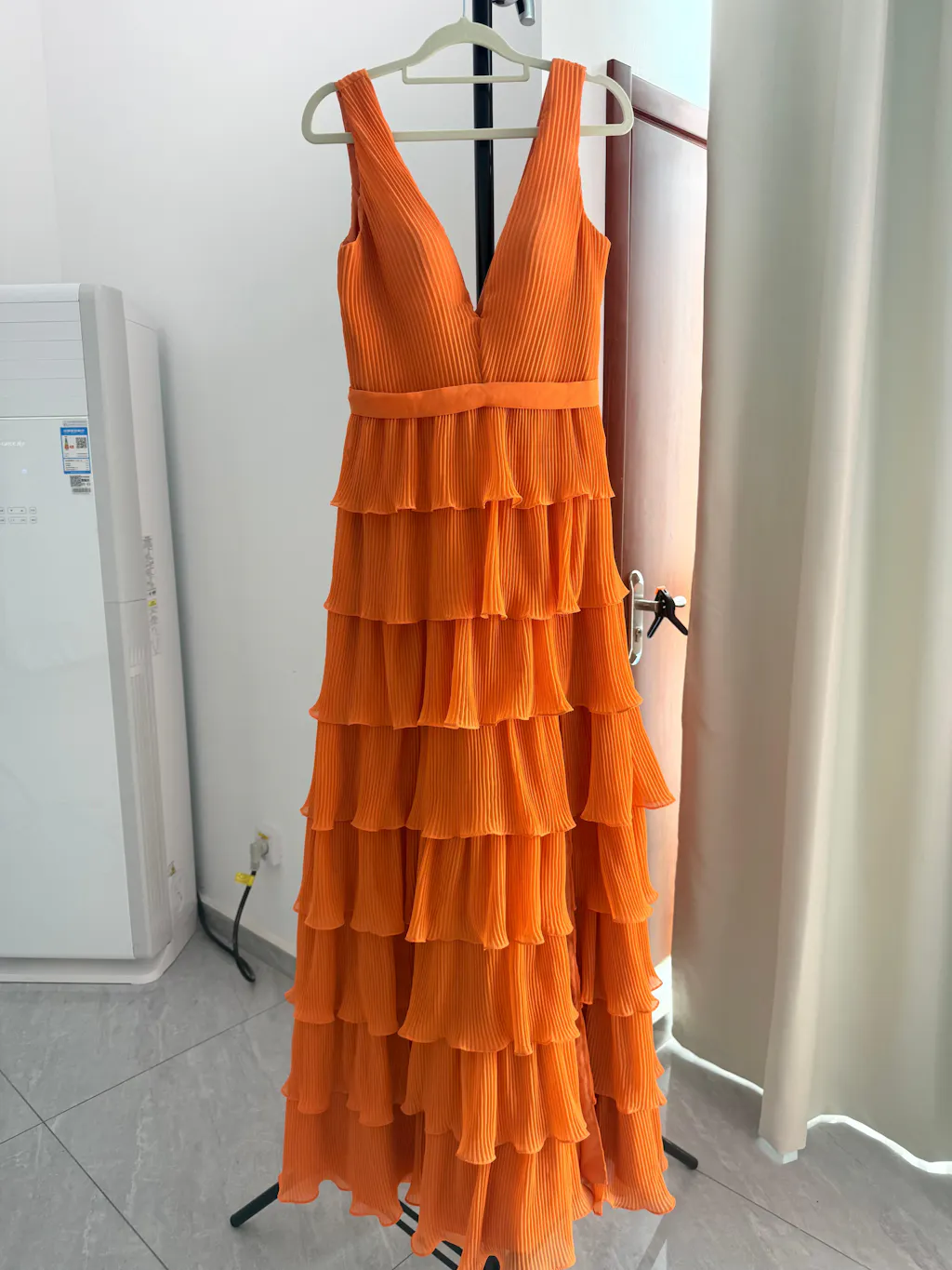 This tiered ruffle gown was a total hit for my wedding party! I love that it comes in soft shades like green and lilac, which made it easy to create a cohesive look. The pleated chiffon has a beautiful texture, the V-neck is flattering on everyone, and the tiered layers add lovely movement. My girls wore them to our beach wedding and looked absolutely stunning in the sunlight.