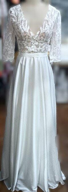 Ivory Lace Half Sleeve A-Line Wedding Dress