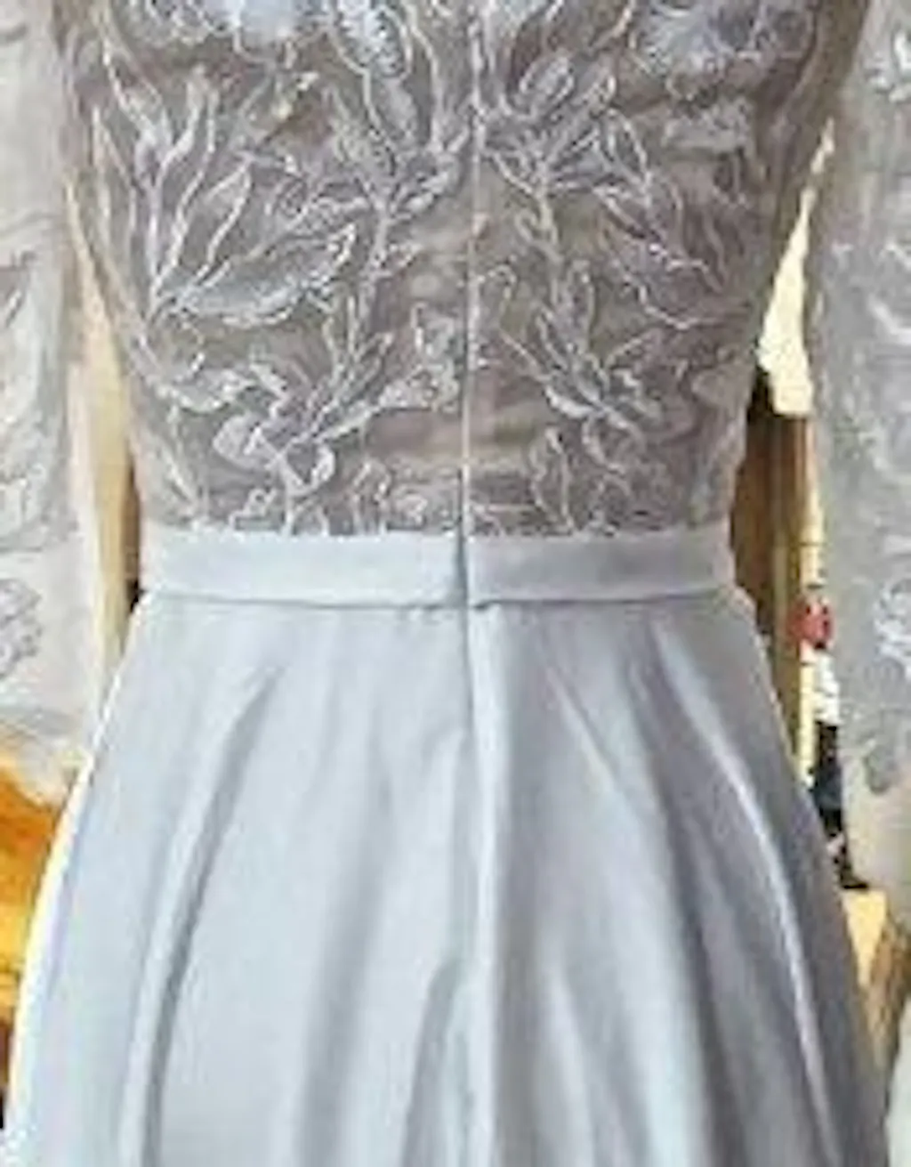 Ivory Lace Half Sleeve A-Line Wedding Dress