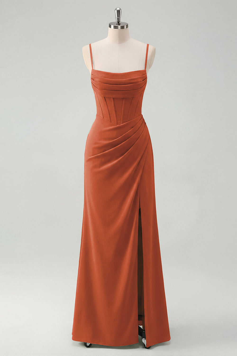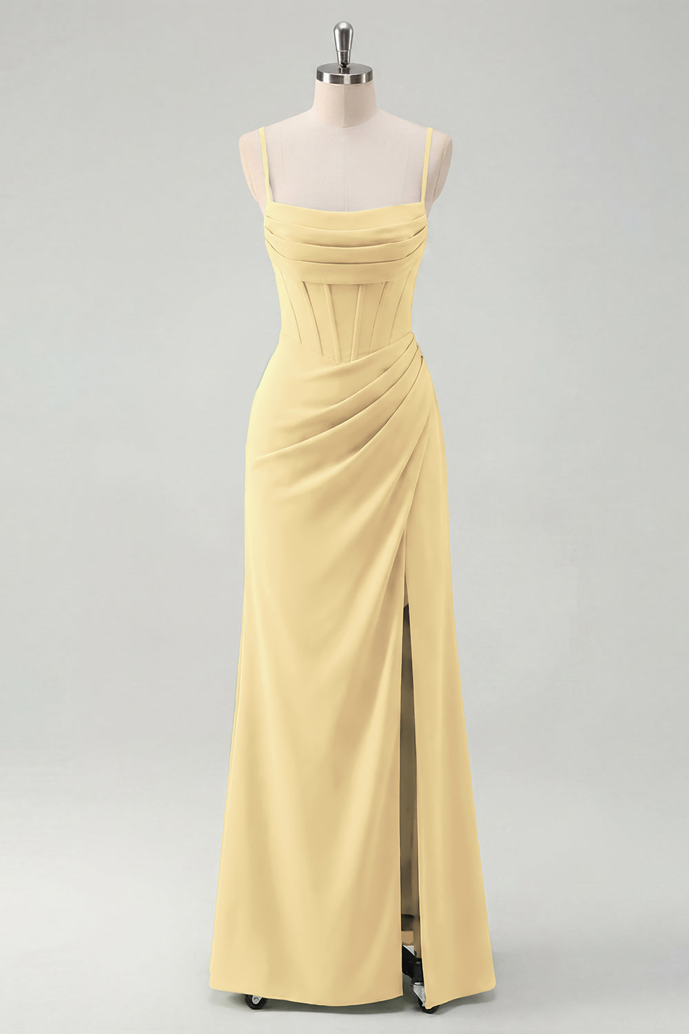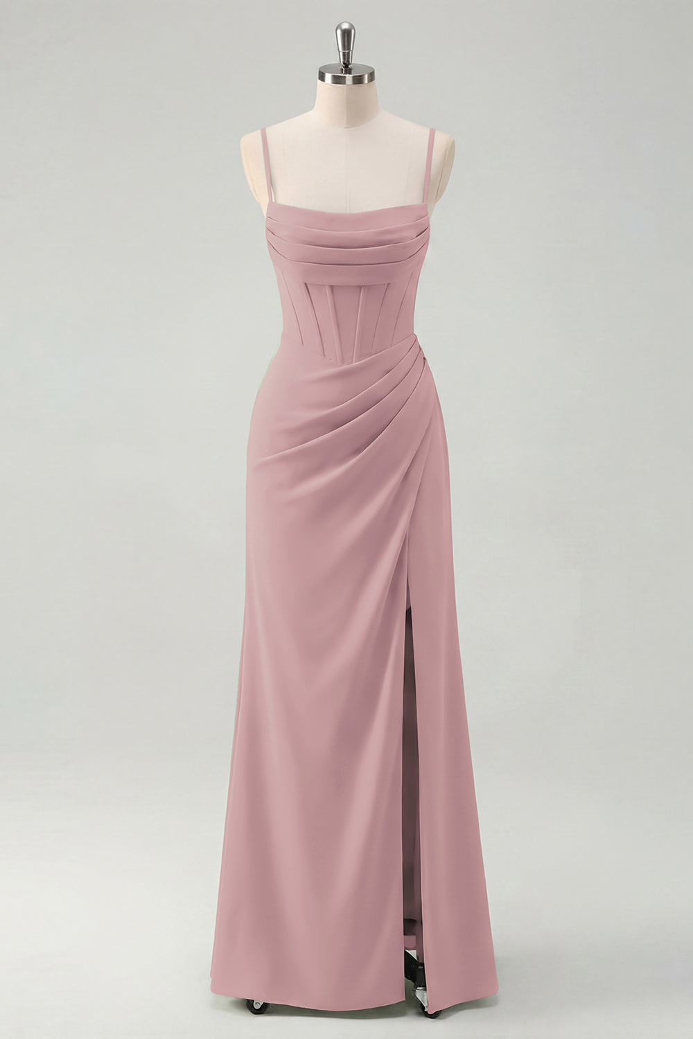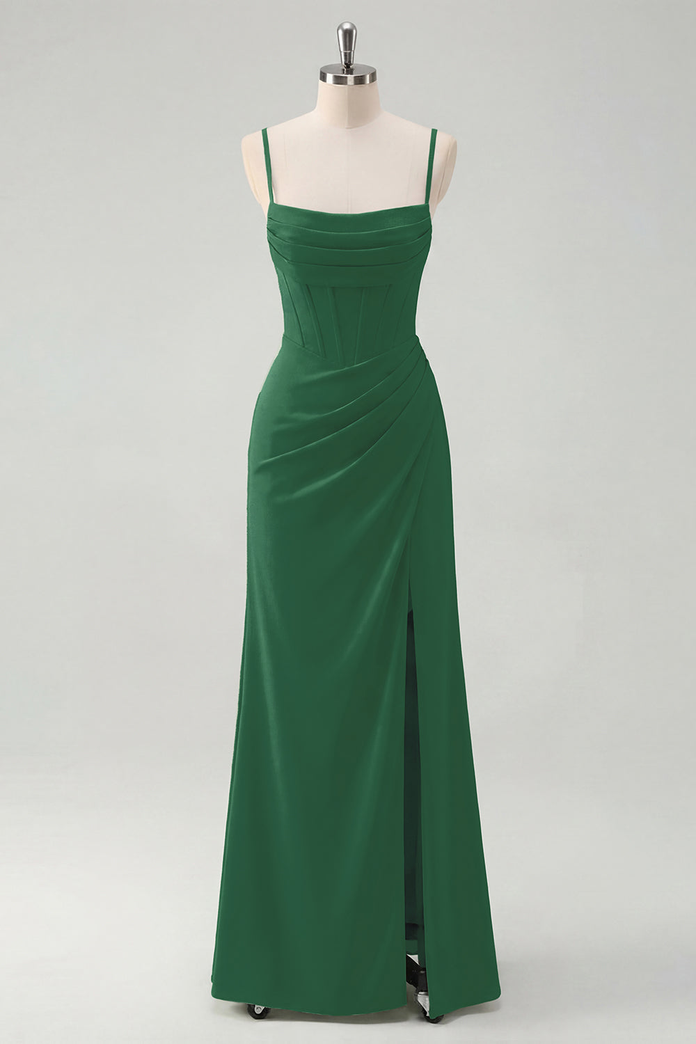 Sage Spaghetti Straps Sheath Bridesmaid Dress with Slit